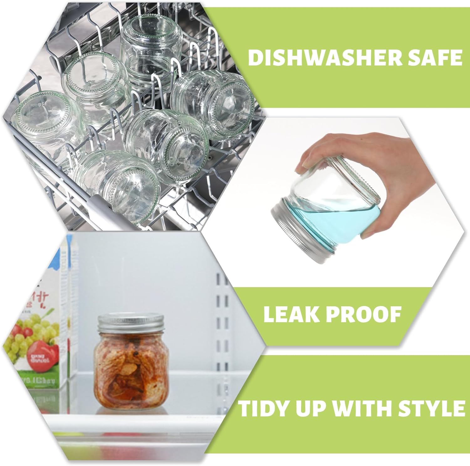 - BPA Free and food grade dishwasher safe glass mason jars, your best choice of food storage. It is also suitable for crafts and decorations. You can paint them and decorate in the party, or make any DIY projects you want