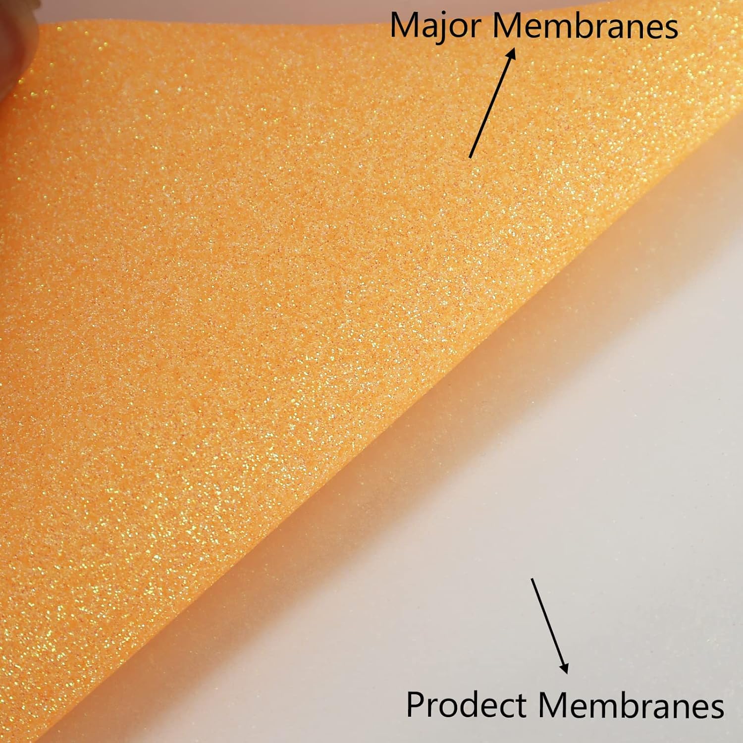 - GLOW IN THE DARK GLITTER PU HTV VINYL ROLL: Our luminous orange Glitter Heat Transfer Vinyl is made of high-quality and eco-friendly PU vinyl material, incredibly strong, durable, vibrant fine, and stretchy. Our luminous glitter vinyl use high quality glitter, sealed well, no residue, no powder. And after absorbing enough ambient light, it has luminous effect at night. The surface is very smooth after being treated with a special process, which makes it easy to layer and apply