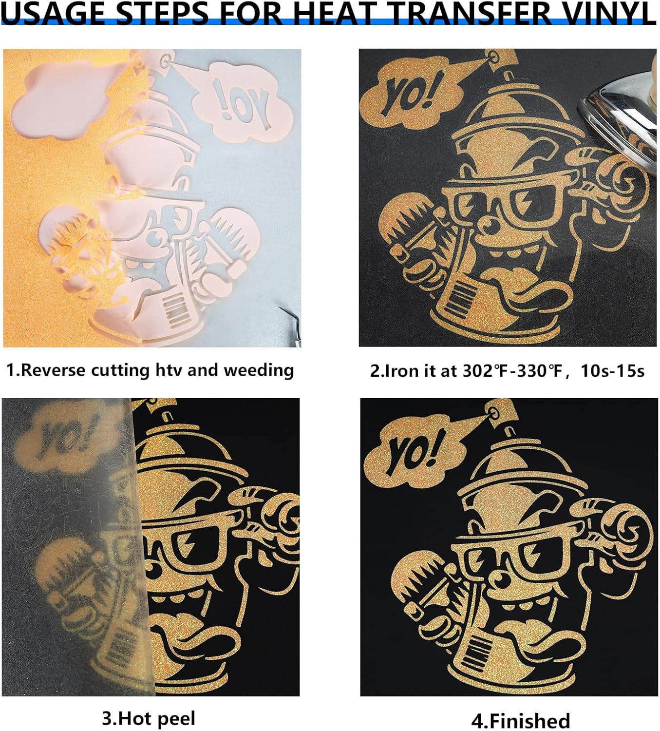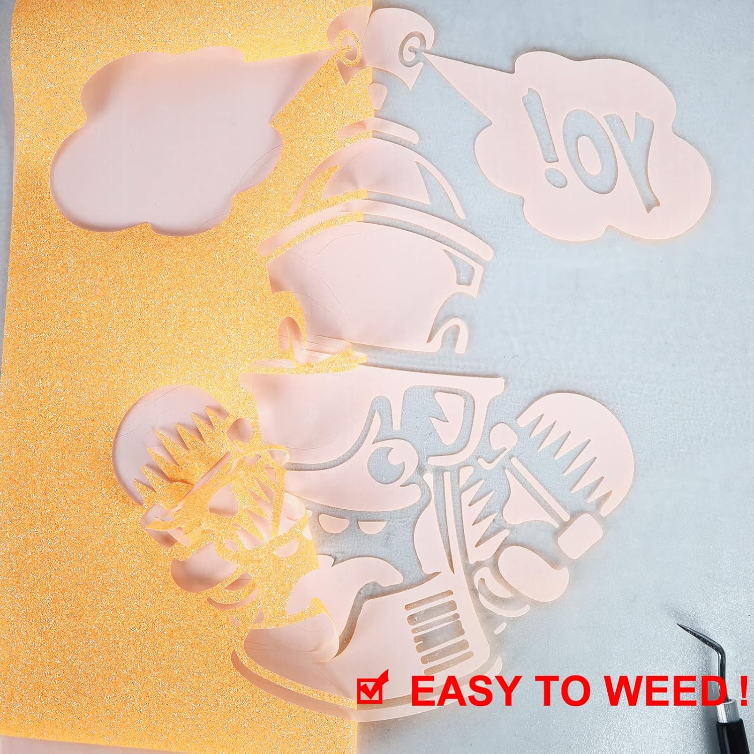 - EASY TO CUT & WEED & TRANSFER: Our luminous Orange Glitter iron on vinyl rolls is sensitive to temperature and pressure, which can be quickly and easily to weed and peel. It is compatible with all cutter machines, most heat presses and household irons on the market, and perfect for 12x12" and 12x24" cutting mats. You can easily apply adhesive backing HTV to fabric using a hot iron or hot press. Please note that it is warm peel