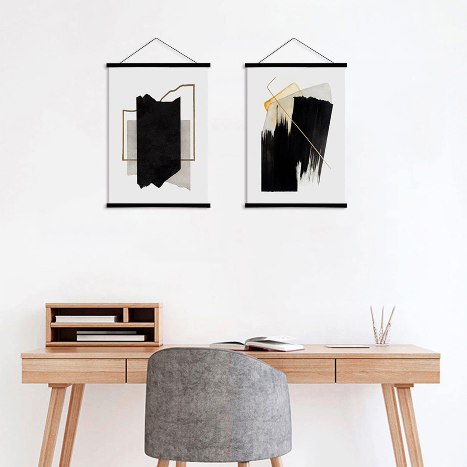 - Quick Assembly and Easy Use: This poster hangerās solid wood magnetic dowels clip onto the printās top and bottom, allowing you to change out the art whenever you want without damaging them