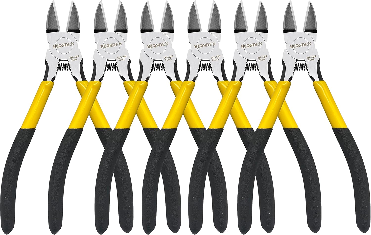 - 【Ultra Sharp】BOOSDEN Wire cutters, 6 pcs, 6.5 inch cutting pliers, diagonal wire cutters are Ultra Sharp because of the material and production process, they are made of high carbon Steel, the blades of the side cutters pliers are high-frequency hardened.