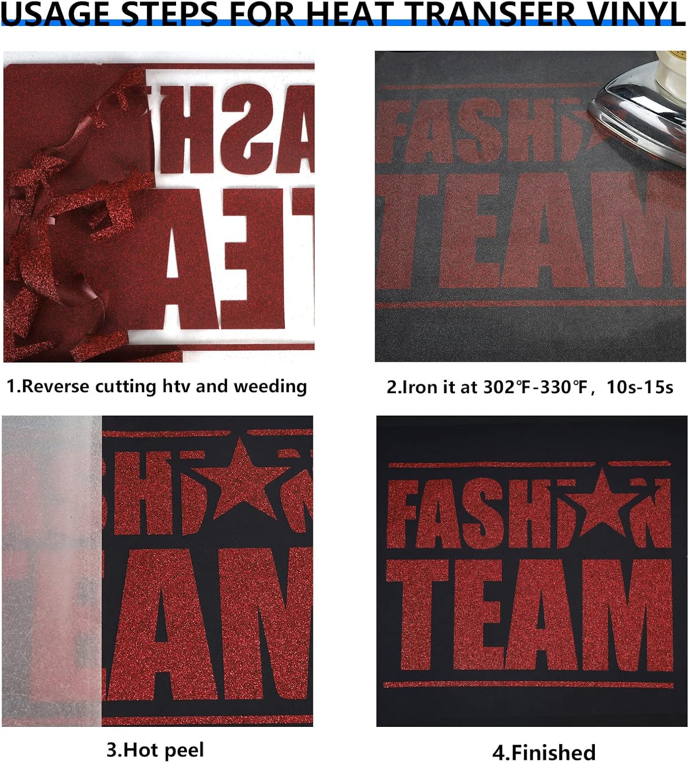 - EASY TO CUT & WEED & TRANSFER: Our red glitter HTV Vinyl rolls is sensitive to temperature and pressure, which can be quickly and easily to weed and peel. It is compatible with all cutter machines, most heat presses and household irons on the market, and perfect for 12x12" and 12x24" cutting mats. You can easily apply adhesive backing HTV to fabric using a hot iron or hot press. Please note that it is warm peel