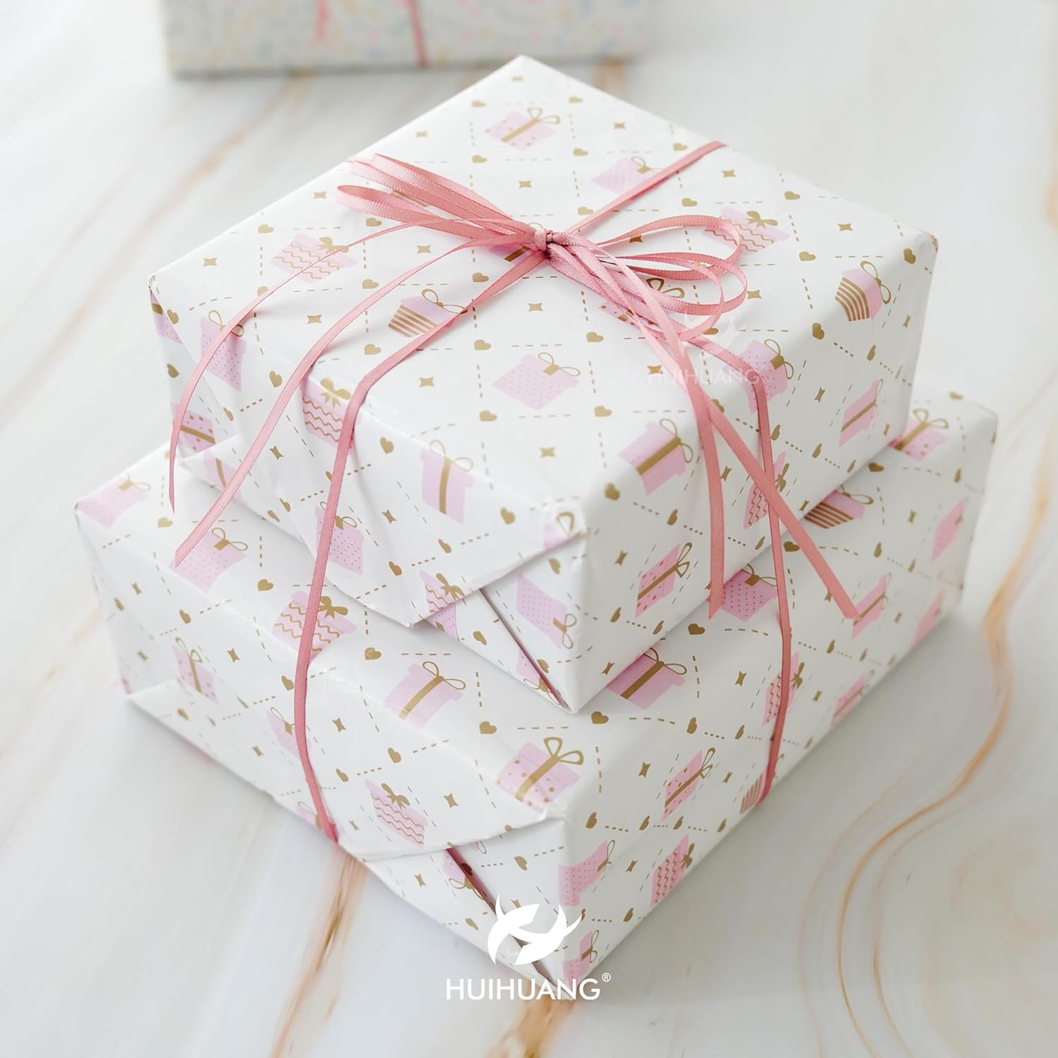 HUIHUANG 1/8 inch Blush Pink Satin Ribbon, 100 Yards Roll, Luxurious Double Face Satin, Polyester, Multi-purpose Occasions, Gift Wrapping, DIY Bows, Decoration, Sewing, Invitations