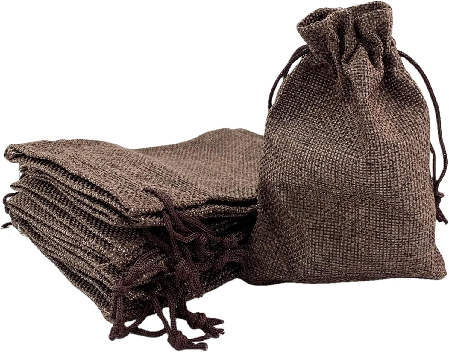 - Palmhomee Pack of 25 Burlap Gift Bags with Drawstring Linen Jewelry Pouches Wedding Hessian Jute Bags for Birthday Jewelry and Treat Pouches Party Wedding Favors Gift Art and DIY Craft (4x5.6 Inch, Coffee)