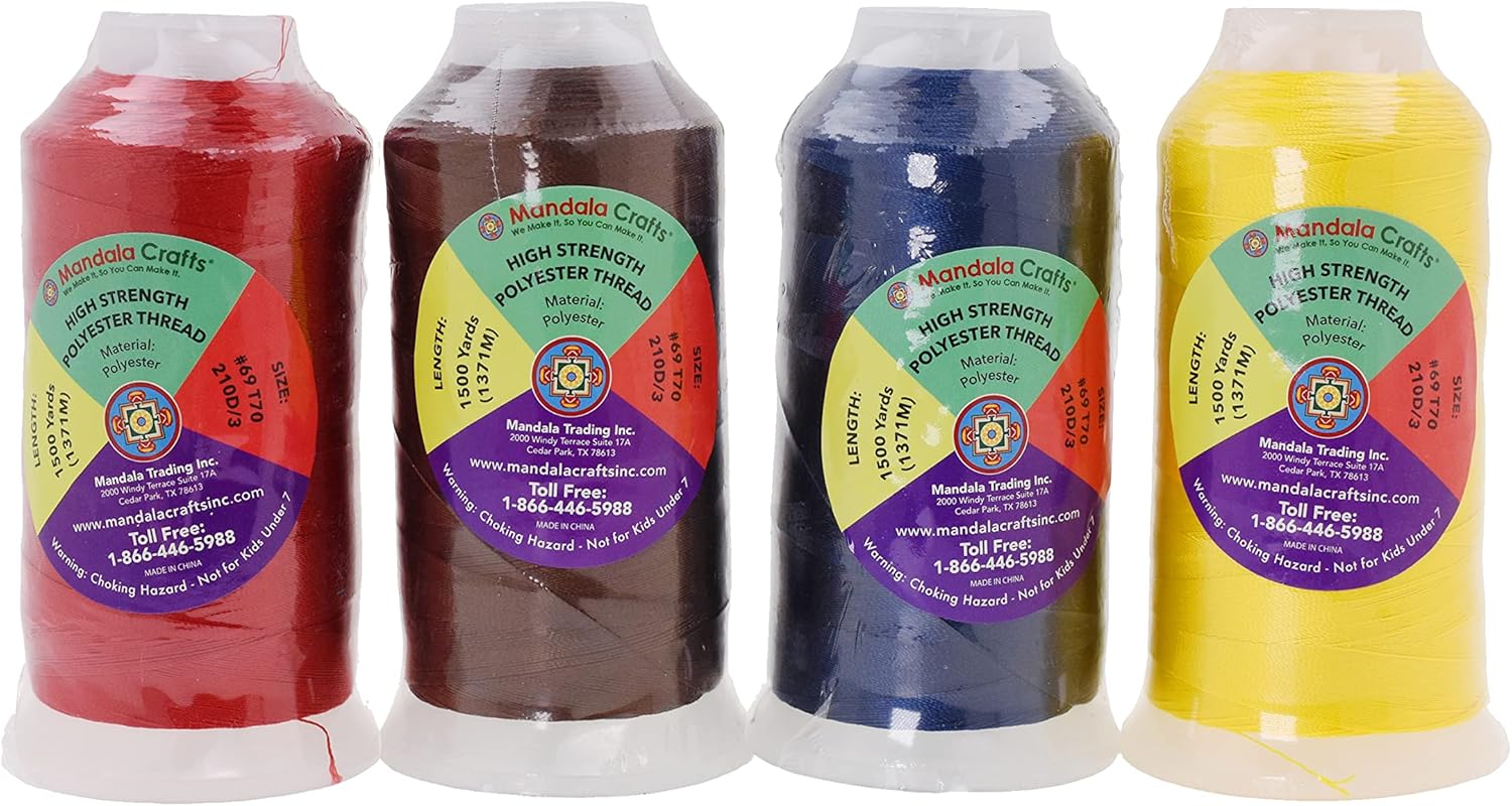 - Brown, Navy Blue, Yellow, Red Heavy Duty Thread for Sewing Machines, Serger, & Hand Sewing: Coated with bonding agent to reduce friction, the continuous 6000 yards all-purpose #69 210D/3 T70 thread will not unravel & yield smooth stitches.