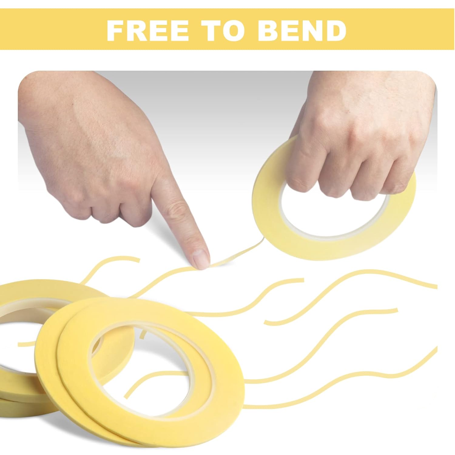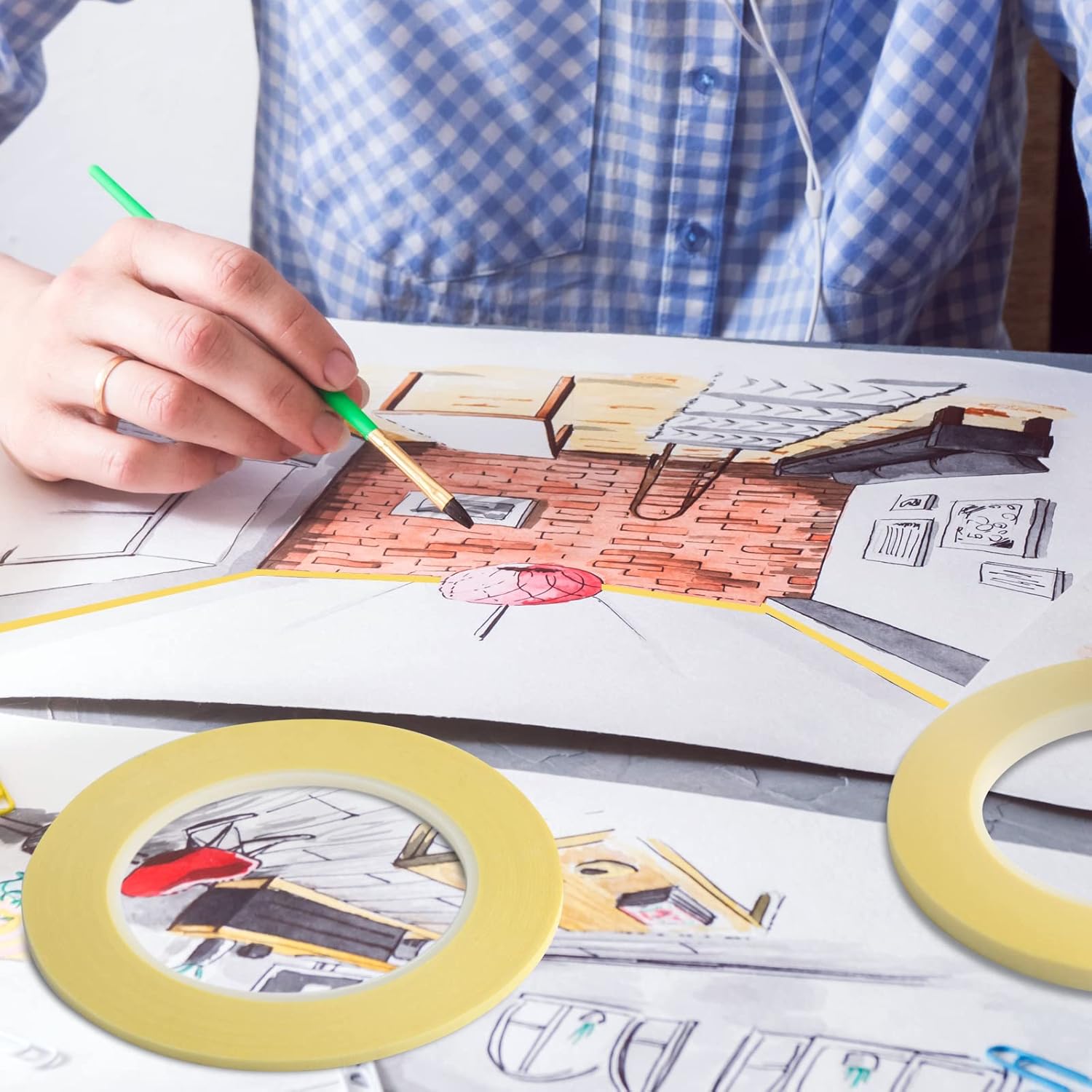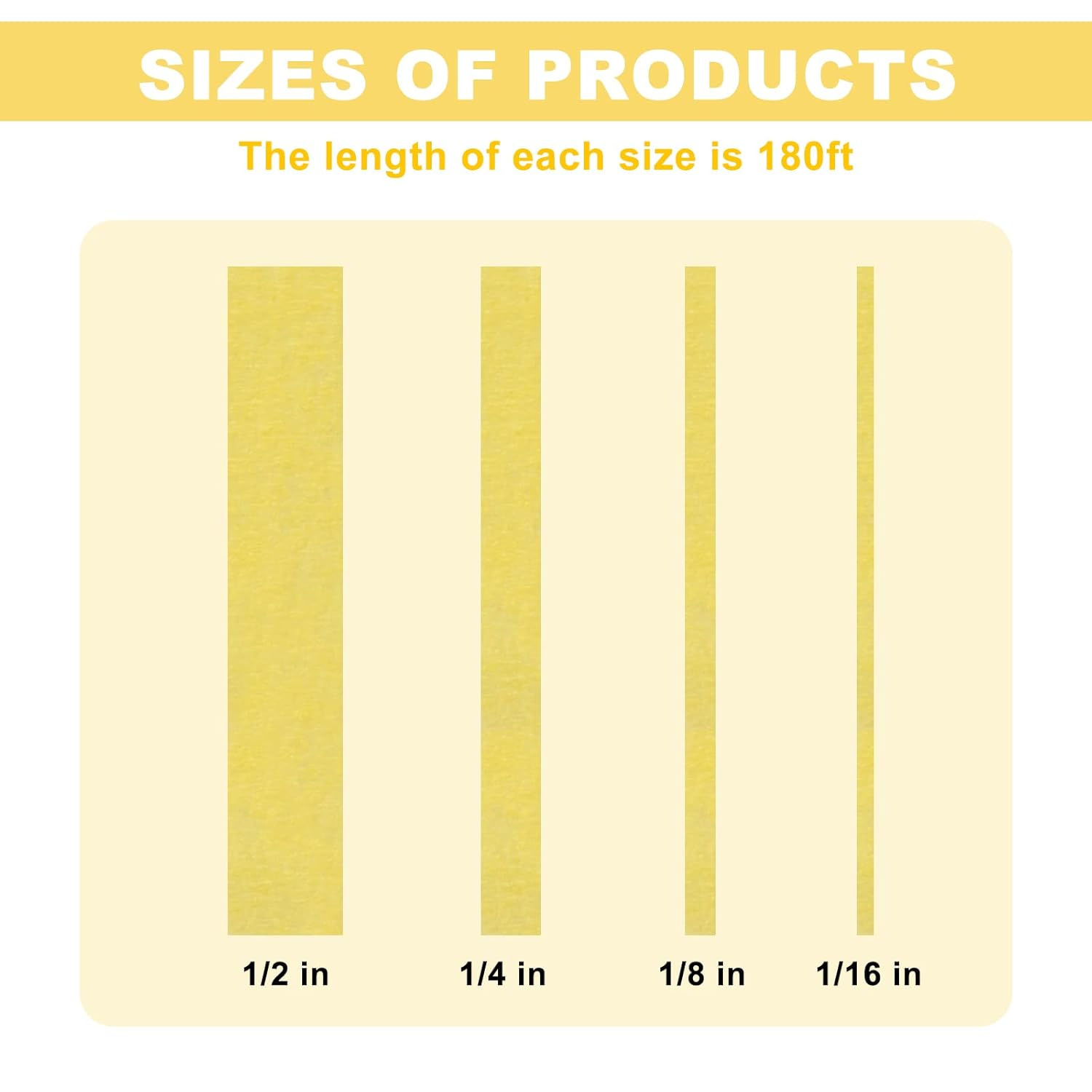 - 4 rolls of fine line tape with different widths - 1/16 in, 1/8 in, 1/4 in and 1/2 in with 60 Yard, meet your various needs, and adequate length gives you a longer time service. These fineline masking tapes will let you post the shape, length and width you want at will.