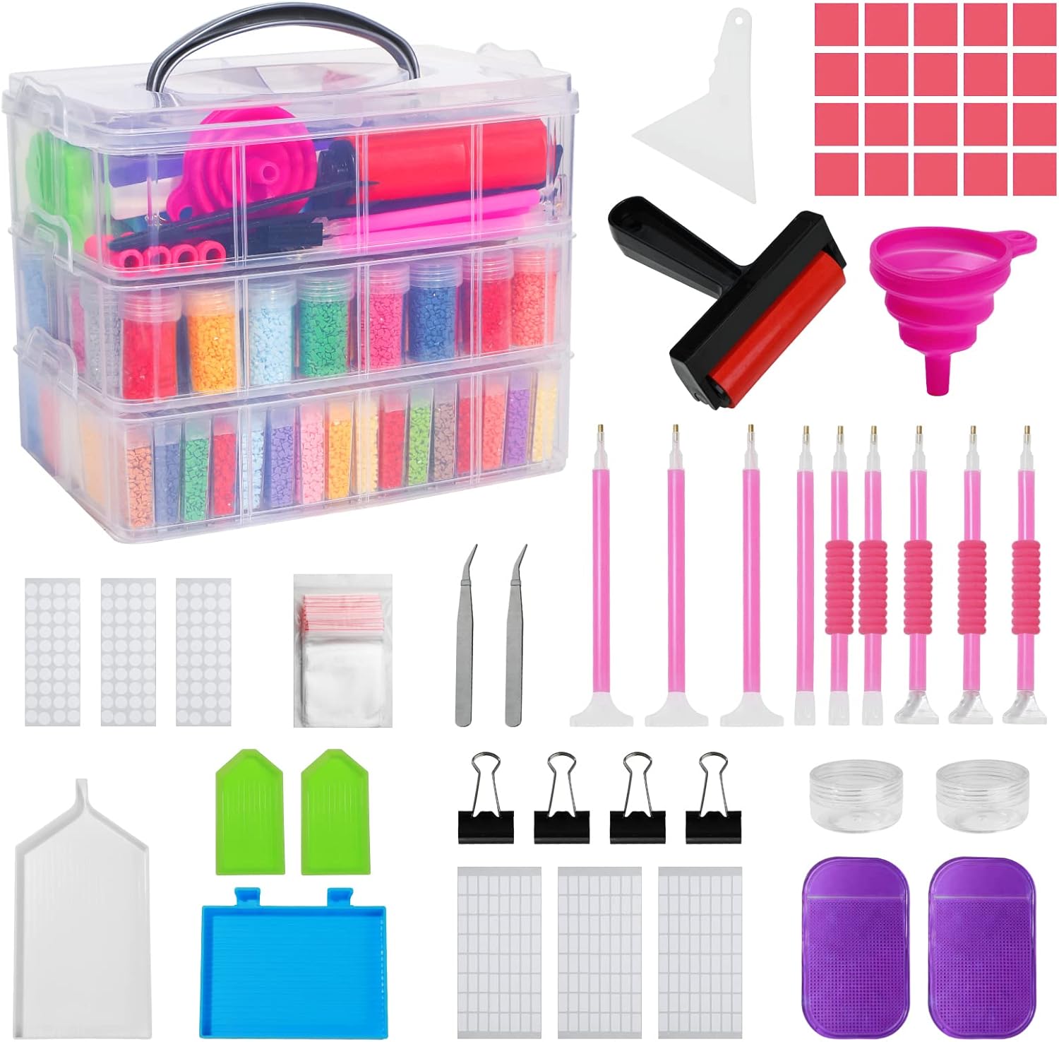 - Multifunction Diamond Storage Box: Our diamond painting accessories kit can store various colors of diamonds and necessary diamond painting tools. With the help of these diamond painting tools, you can store the accessories very neatly and easily accessible. In addition to diamond painting accessories, this box can also be used to store jewelry beading supplies, embroidery tools. Let's create more beautiful handicrafts!