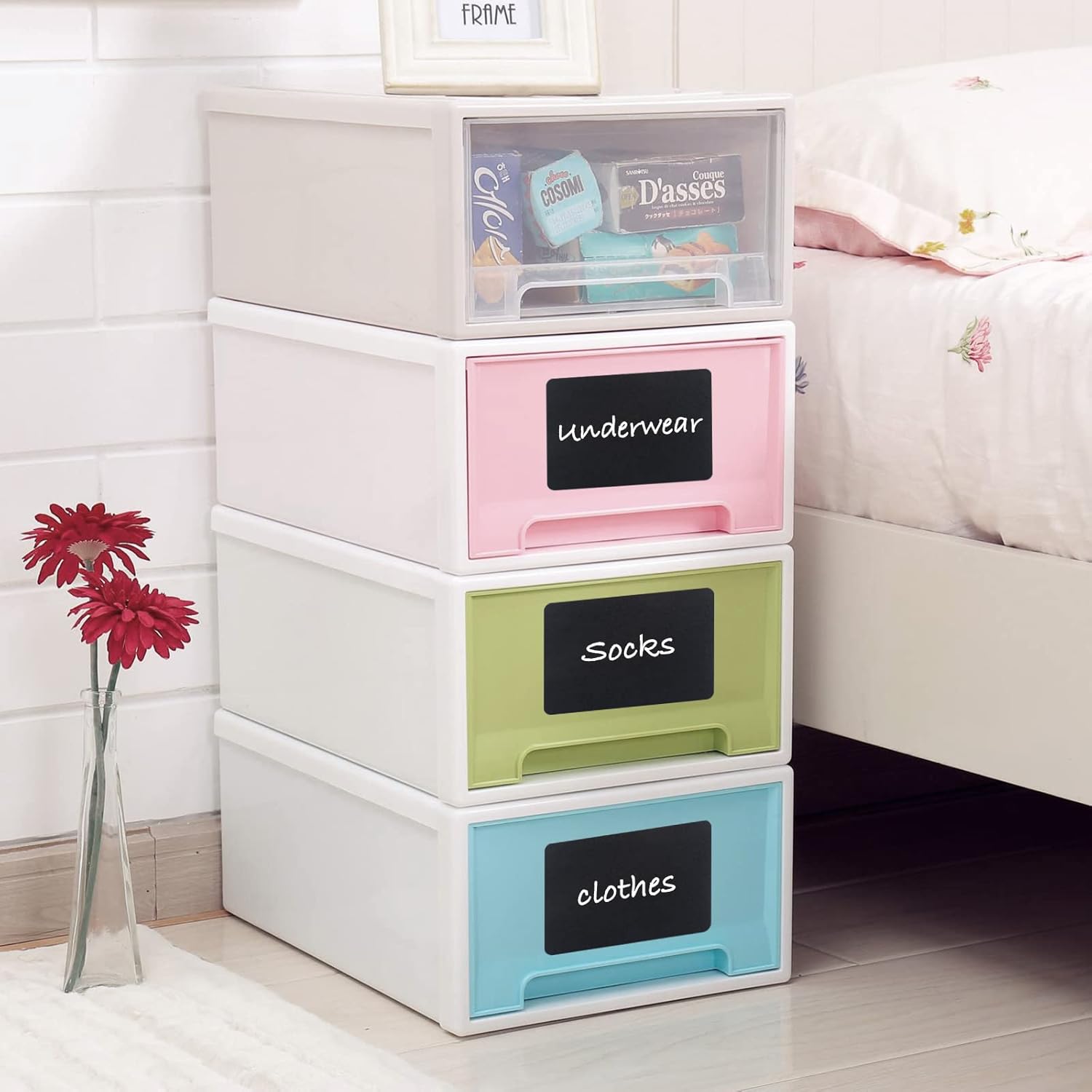 - π WHAT'S YOU GET: Extra Large Chalkboard Labels, Pack of 48 (24 Sheets of 2 Labels) + A white chalk marker. Chalkboard stickers size at 4"x6" (10x15cm), this adhesive black container labels can stick well on different materials like metal, glass, plastic, wood and ceramic porcelain, quickly find what you're after with cute chalkboard stickers.