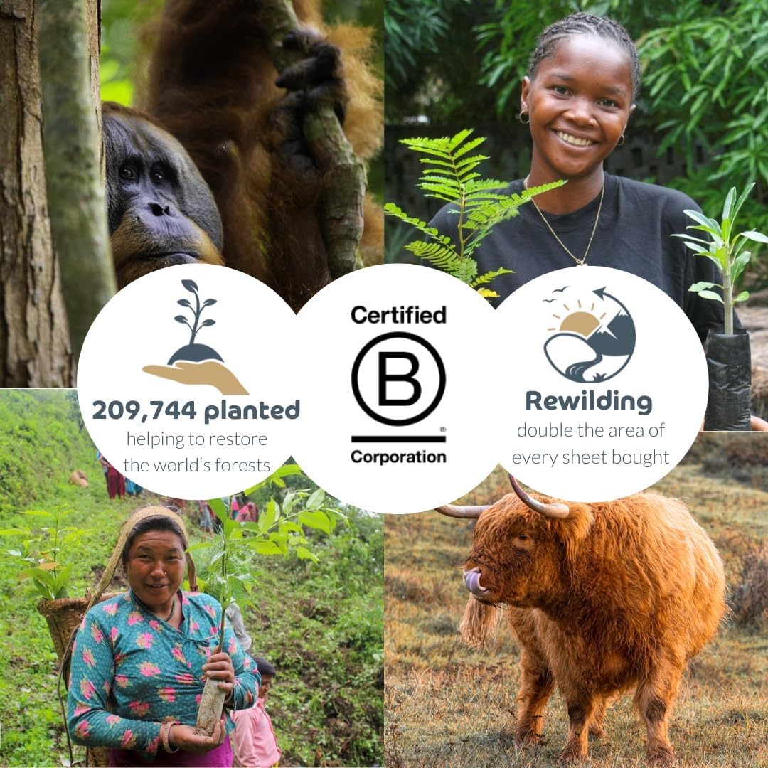 - EVERY SHEET REWILDS: For every single square of tissue you buy from us, we’re committed to rewilding double that area in nature. So, if you buy a box of 24 rolls, that’s 144m² of the countryside that you’re helping to restore.
