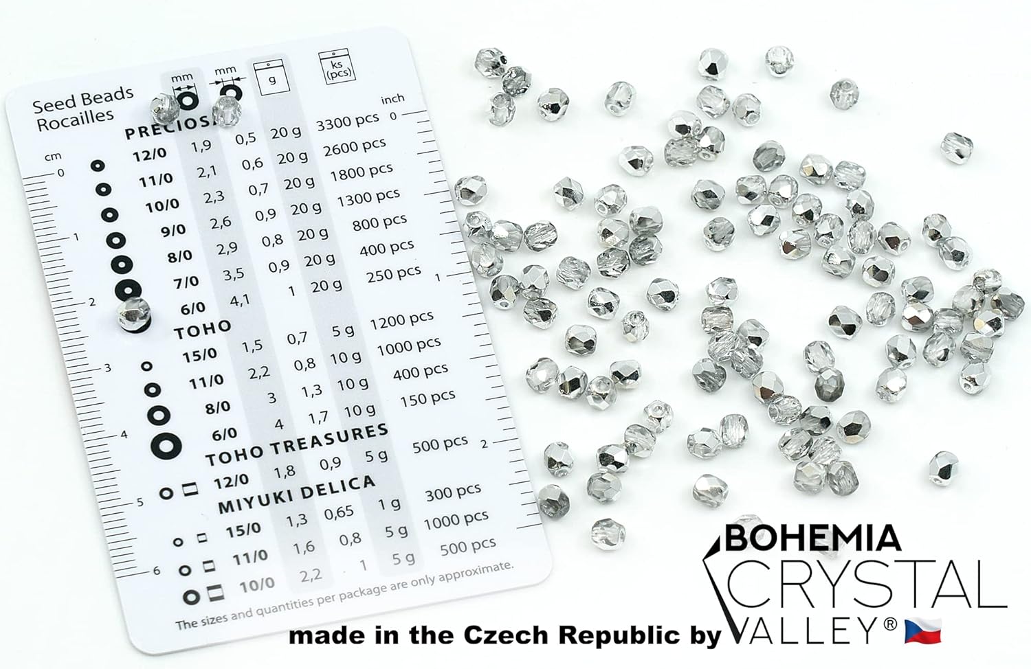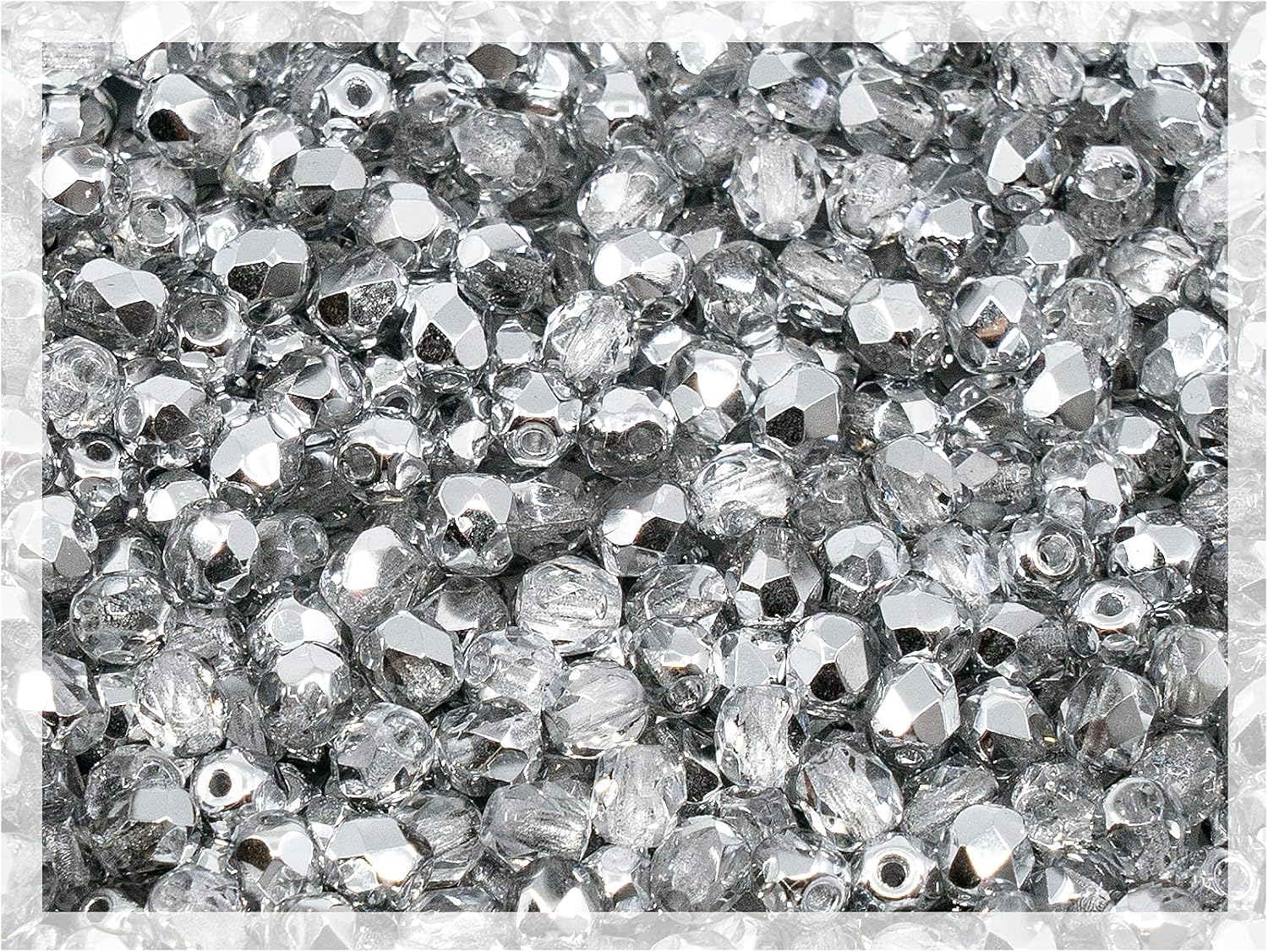 1.8 oz (50g, Approx. 600pcs) of Faceted Fire Polished Pressed Czech Glass Beads 4mm (0.16in), Crystal Silver Aluminum Labrador 00030-27001 BCV