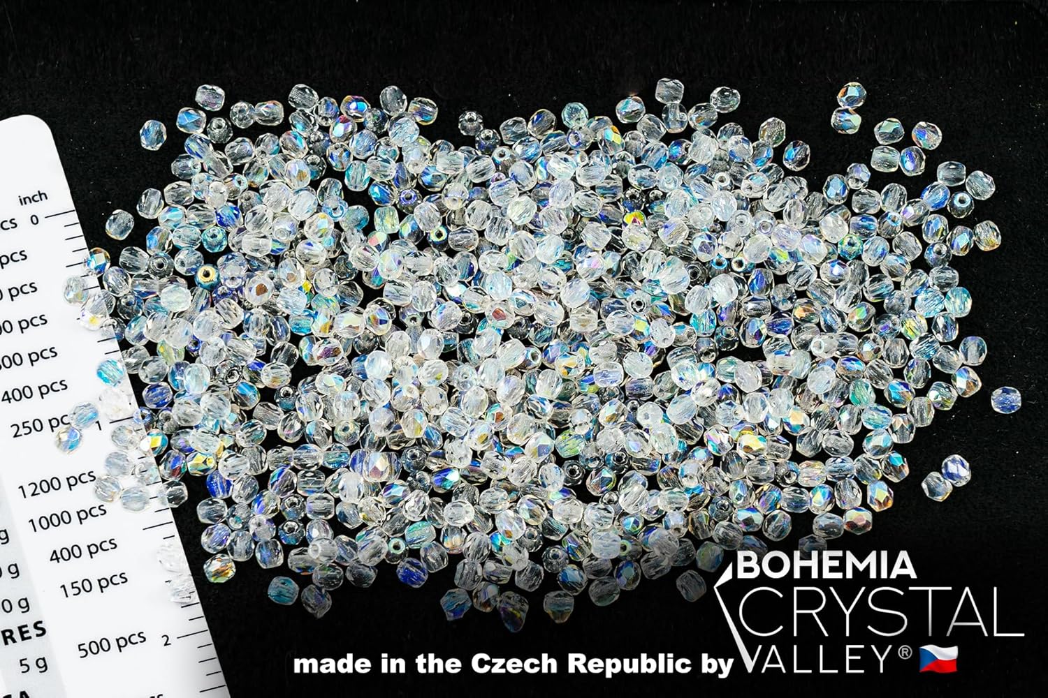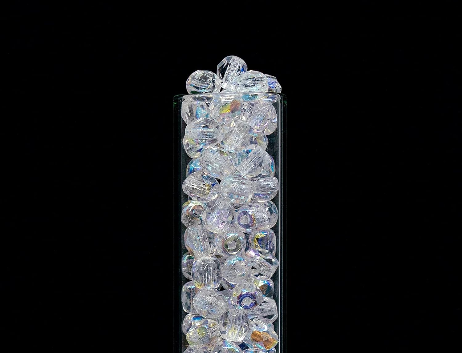 1.8 oz (50g, Approx. 600pcs) of Faceted Fire Polished Pressed Czech Glass Beads 4mm (0.16in), Crystal AB 00030-28701 BCV