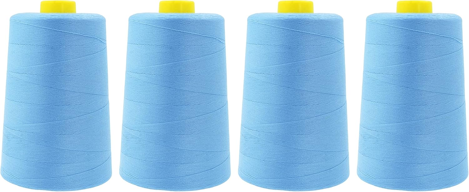 - Light Blue Serger Thread Cones 4 Pack: The thread or hilos para coser is knot-free and non-stretch, serving as great light blue all-purpose thread for sewing, serging thread, sewing machine threads, coverstitch thread, overlock thread, & longarm machine quilting thread.