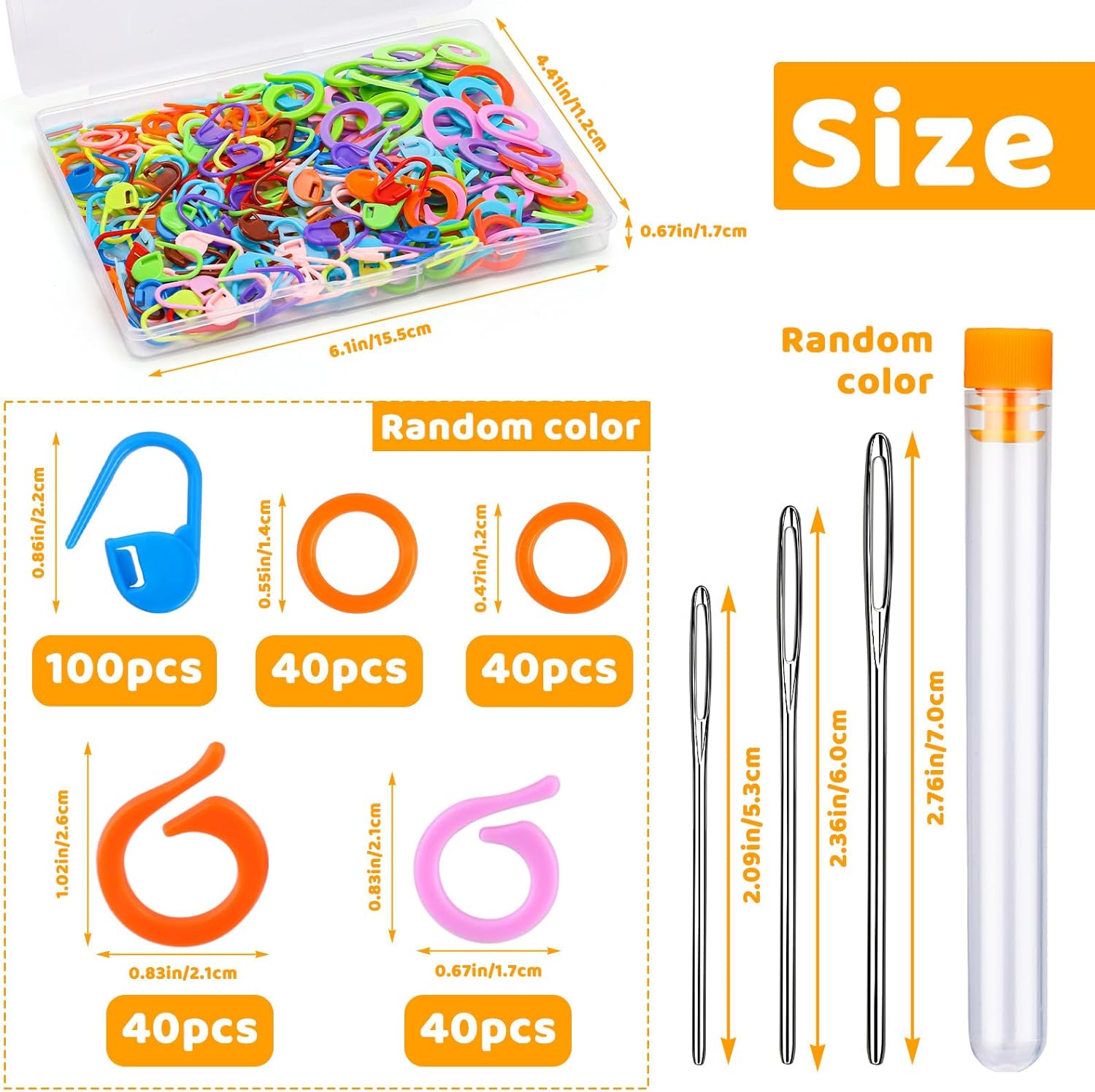 - 263 Pcs Sewing Accessories: Comes with 80 knit counting rings, 100 stitch markers, and 80 knit split rings. In addition, there are 3 big eye yarn needles for your sewing.