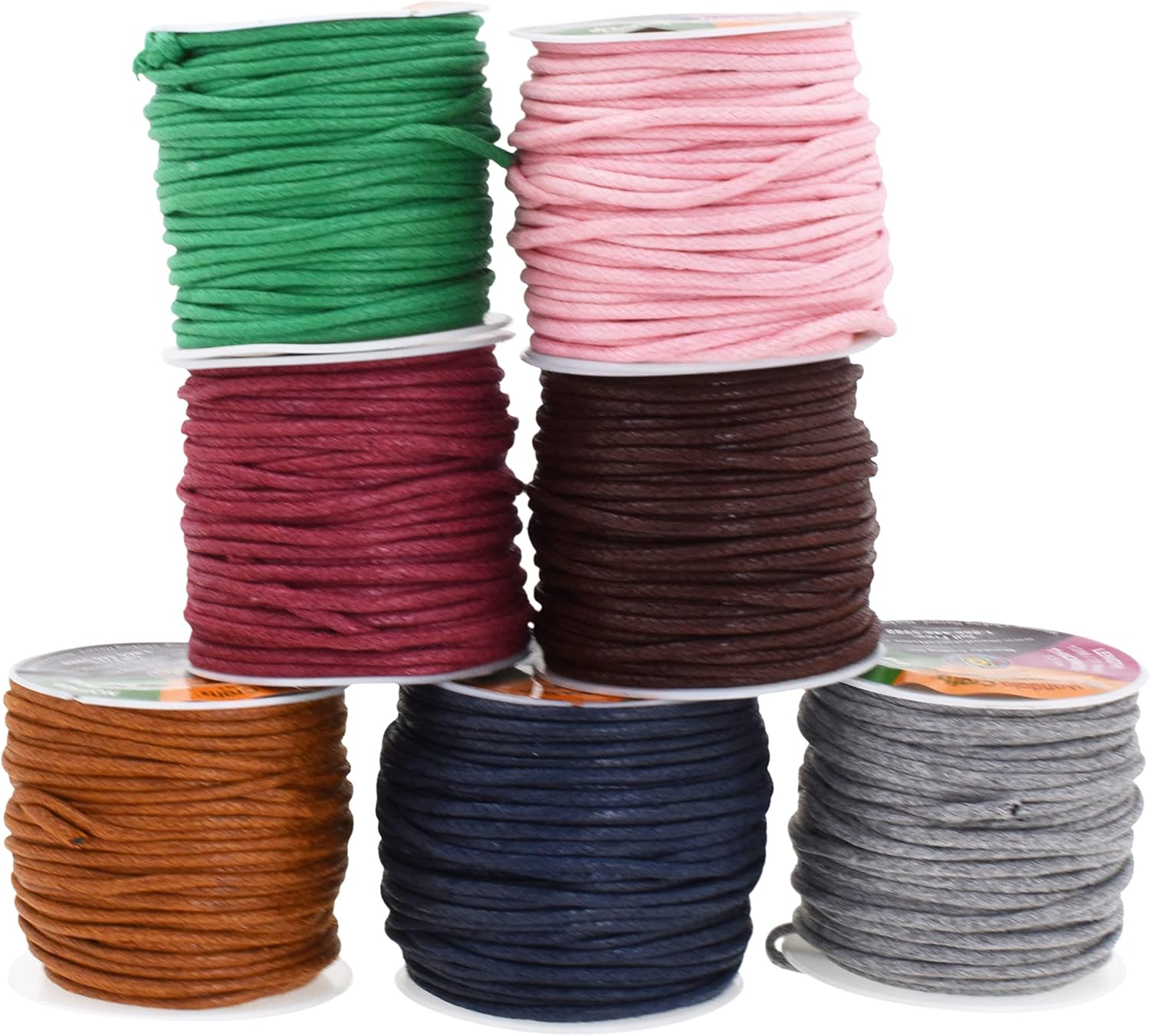 - Bulk Assorted Waxed Cord Roll: The non elastic colorfast 1.5mm cotton cord with heat treatable ends is fraying resistant & bleed free. The continuous 3 ply 165 yds long 1.5mm jewelry waxed cord made from 100 percent cotton is easy to cut, tie, knot, or glue.