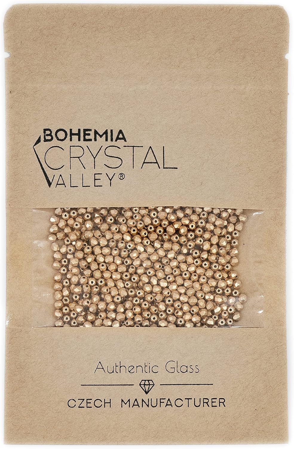 0.88oz (600+ pcs) Faceted Fire Polished Pressed Czech Glass Beads 3mm (0.12in), Aztec Pale Gold - 01710