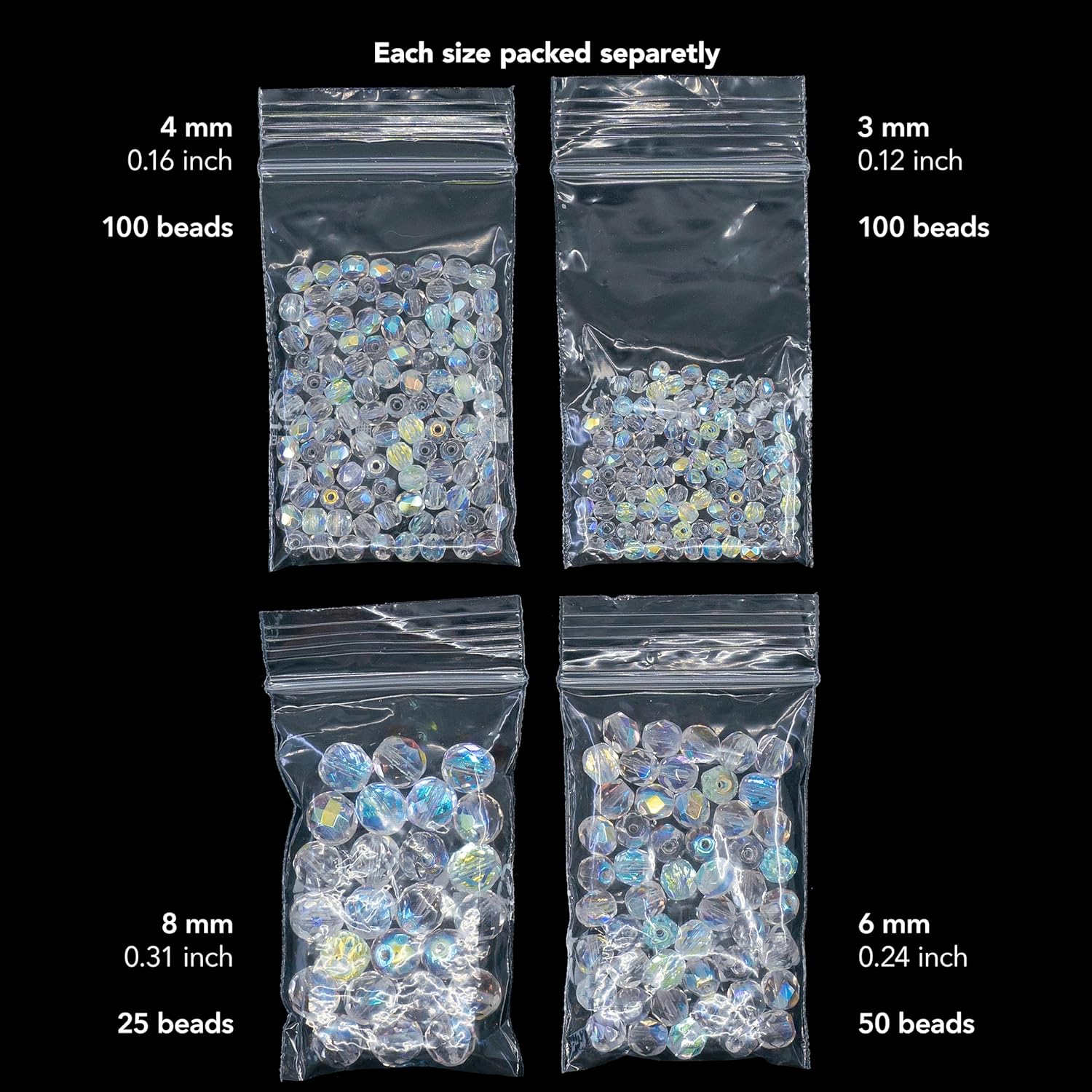 275 pcs Set of Czech Faceted Glass Beads, Fire-Polished Round Crystal AB - 3mm (100pcs), 4mm (100pcs), 6mm (50pcs), 8mm (25pcs) kit for Jewelry Making