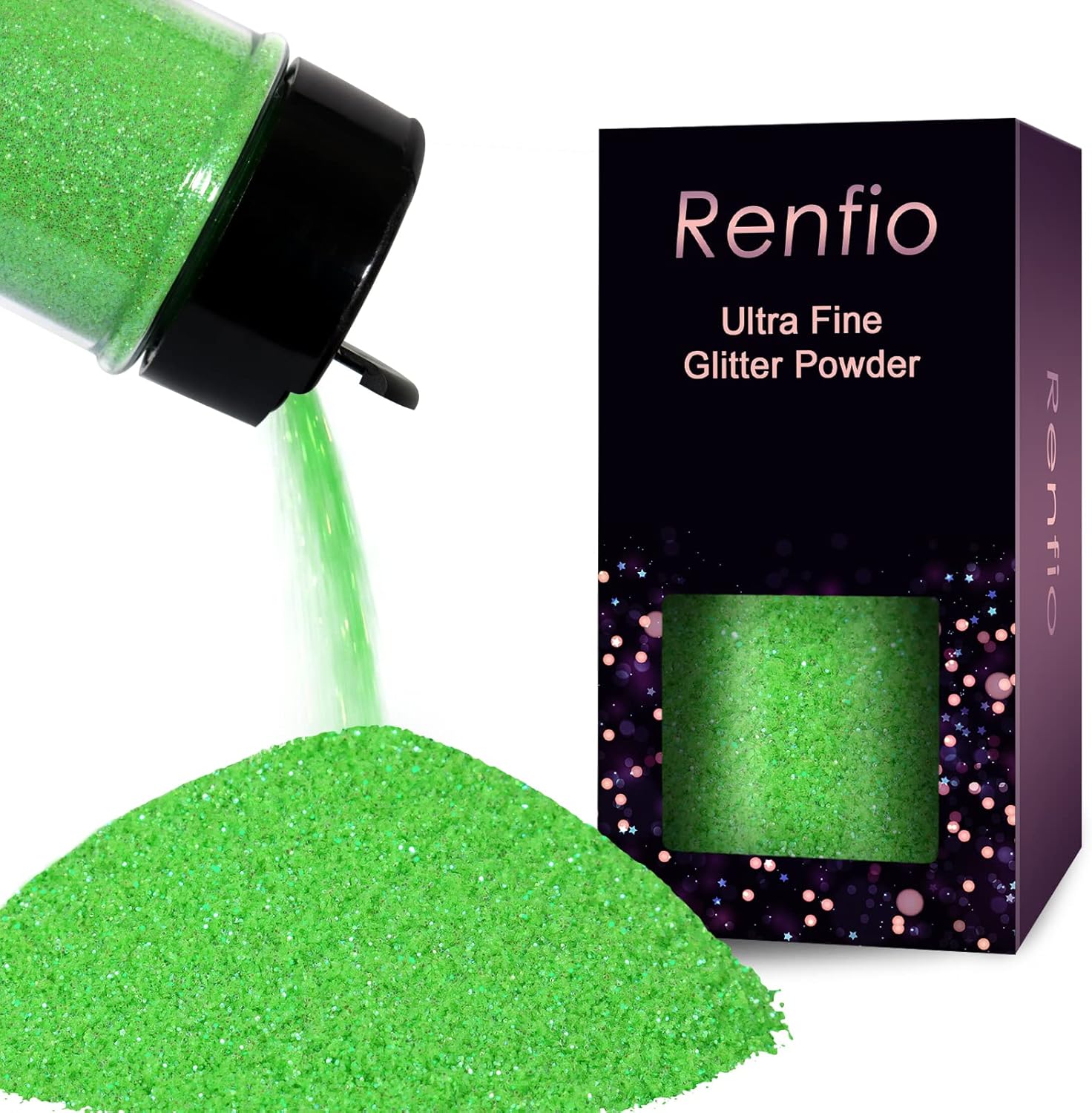 Renfio Iridescent Ultra Fine Glitter Powder Resin Supplies Glitters 1.94 Oz (55g) PET Flake Crafts Sequins 1/128" 0.008" 0.2mm Epoxy Chips Flakes for Tumblers Slime Painting - Light Green