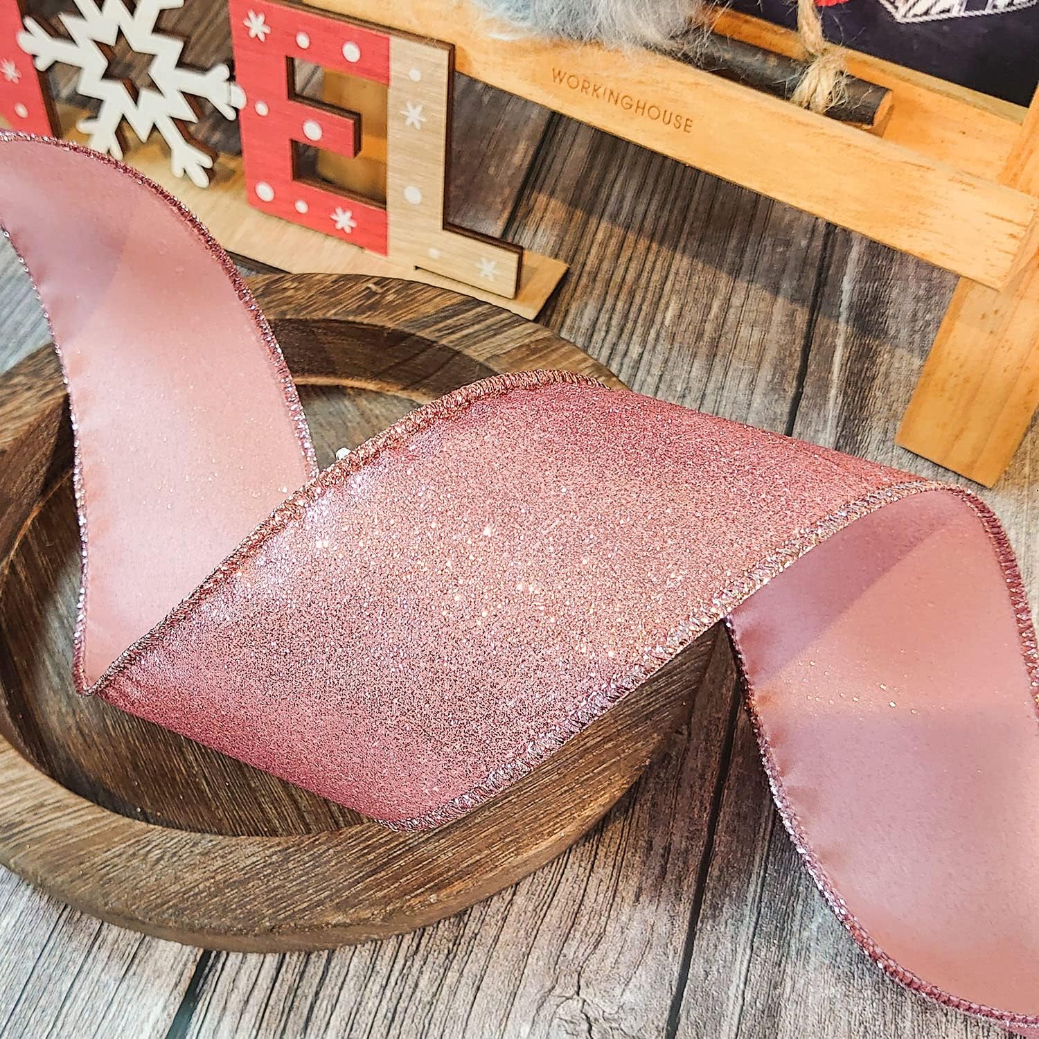 - GREAT WORKMANSHIP - Our Glitter Wired Ribbon 2.5" has a density weave so you won’t find any loose edges. You won’t find any fraying ends or loose strings anywhere, making our Glitter Wired Ribbon 2.5" rose gold color perfect for high-end and professional DIY works and Crafts.