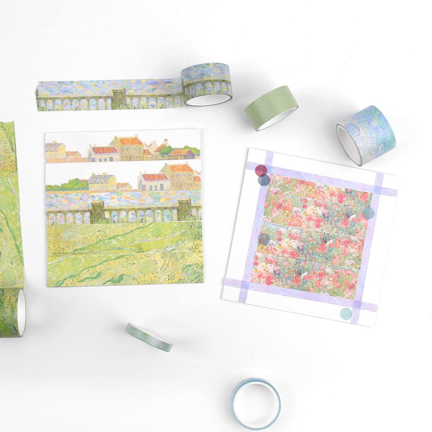 - 3. RUSTIC VIBE OF SPRING: This pack of scrapbook decorative tapes features unique prints in oil painting designs that showcases the green fields and flowers of spring. Great for lighting up your art projects.