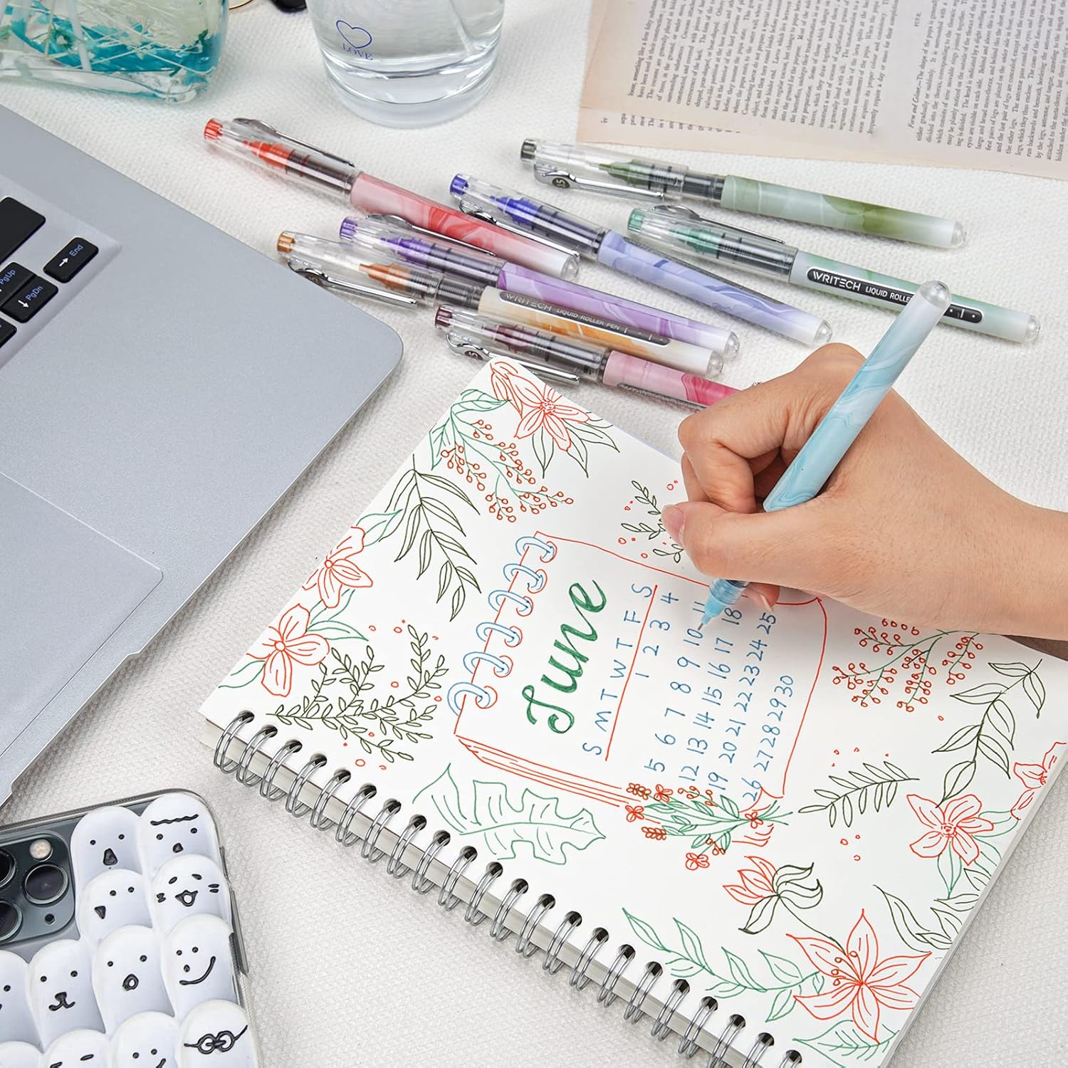 WRITECH Liquid Ink Rollerball Pens: Multi Colored 0.5mm Extra Fine Point Tip Rolling Roller Ball Pen 8ct Assorted Colors for Journaling Smooth Writing Note Taking No Bleed & Smudge & Smear