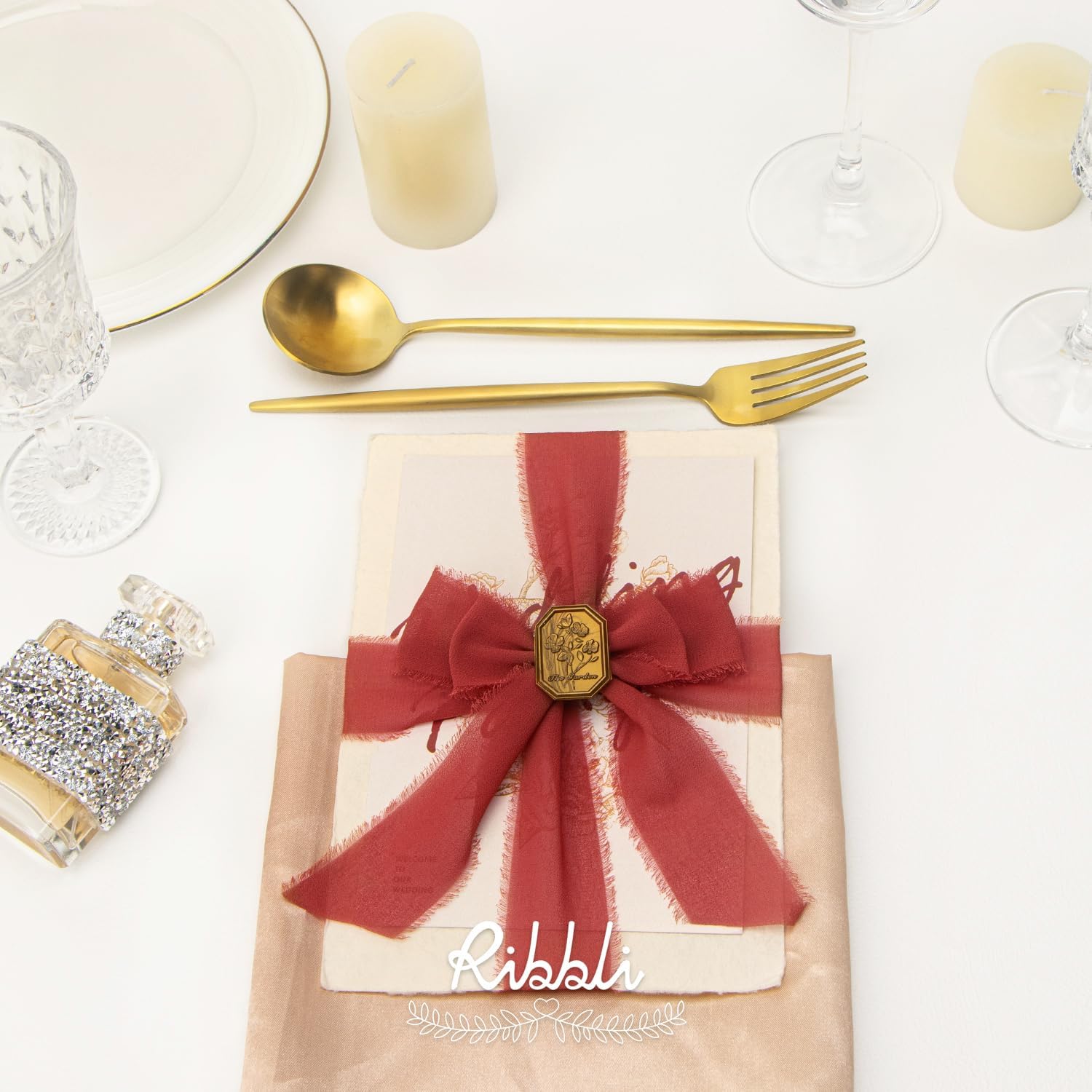Ribbli Rust Red Chiffon Ribbon 1-1/2 inch x 20 Yard Handmade Fringe Chiffon Silk Ribbon for Wedding Invitations, Bridal Bouquets Wrapping, Flower Arrangement Decoration