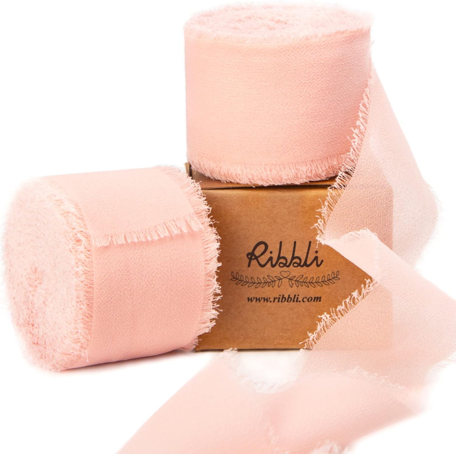 Ribbli Blush Pink Chiffon Ribbon 1-1/2 inch x 20 Yard Handmade Fringe Chiffon Silk Ribbon for Wedding Invitations, Bridal Bouquets Wrapping, Flower Arrangement Decoration