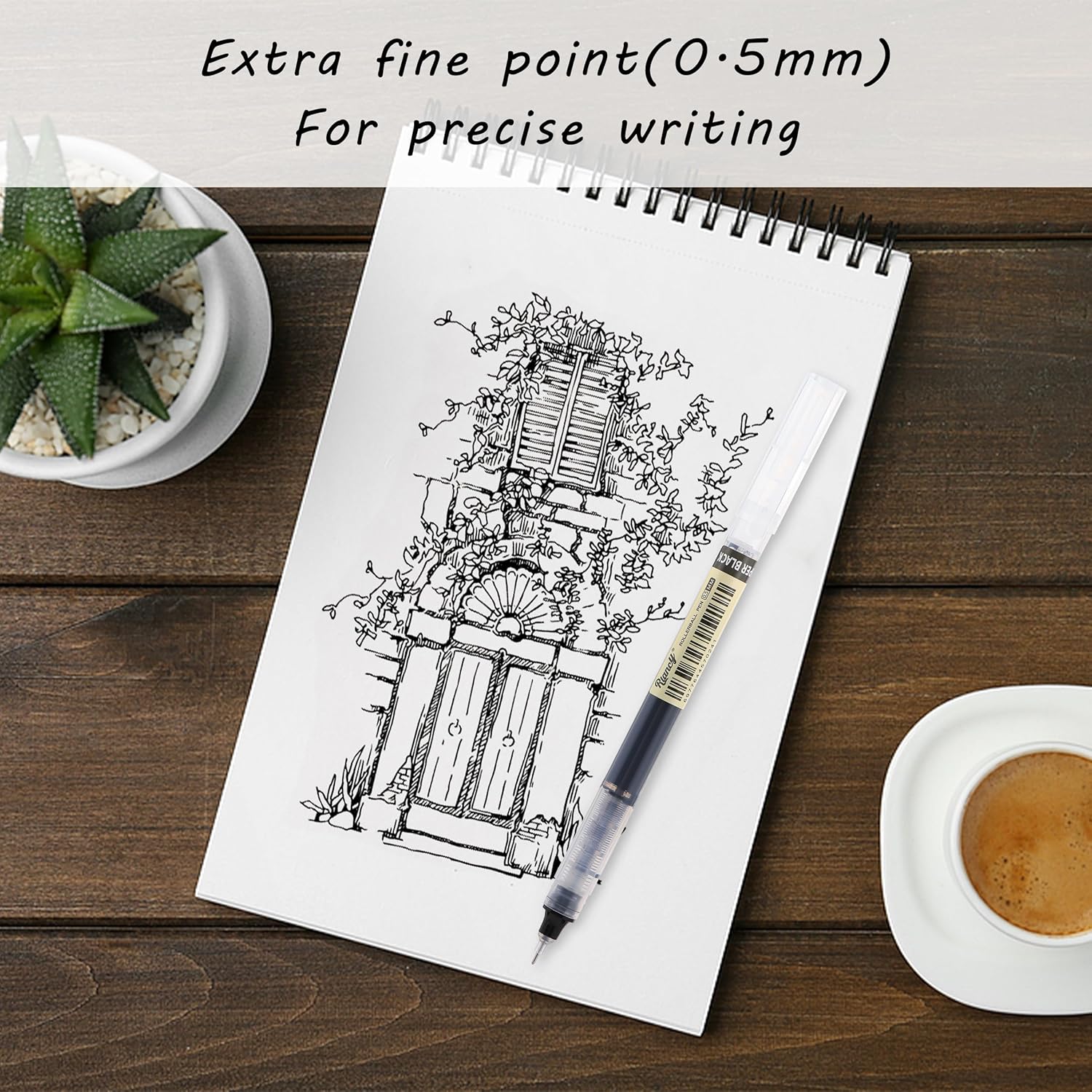 RIANCY 12 Pack Black Liquid Ink Rollerball Gel Pens, 0.5mm Extra Fine Point Tip, Smooth Writing Quick Drying No Smear No Bleed for Journaling, Drawing, Sketching, School Notes & Art Supplies