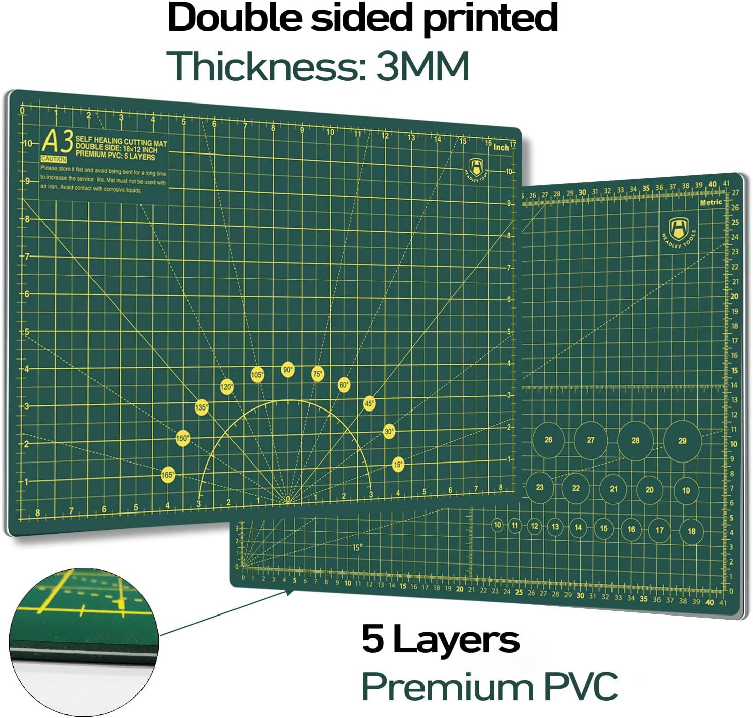 - MAT SIZE: 12 x 18 inches (A3), Double sided, thickness 3 MM. Perfect for small and medium craft and sewing projects.Ideal for as a craft cutting board to use with rotary or straight-edge blades.A great gift choice for any quilters or hobbyists to add to their sewing accessories and quilting supplies!