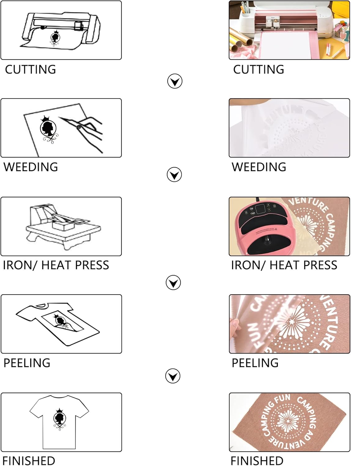 - Compatible With All Plotting Cutters: Our htv roll Heat press vinyl is easy cut with literally, any die-cut machine whether professional or home hobby crafting will be perfect. It adheres to the garment just like print which makes you can barely feel it, with either household flat iron or any kind of heat press machine.