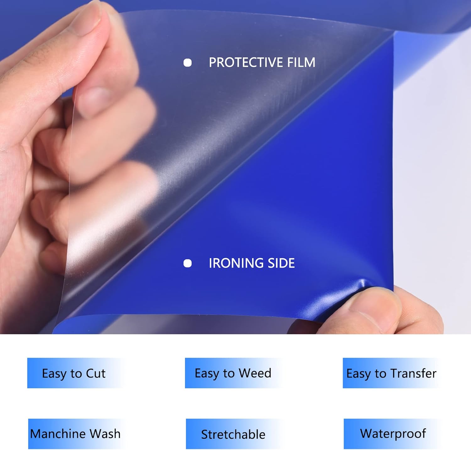 - Glossy heat transfer vinyl HTV: Our Royal Blue htv iron on vinyl is made out of the highest quality polyurethane that is incredibly strong, durable and vibrant fine Using the special technology, the htv is thin and extremely durable and soft. The whole weeding process just like a breeze at the help of sticky back.