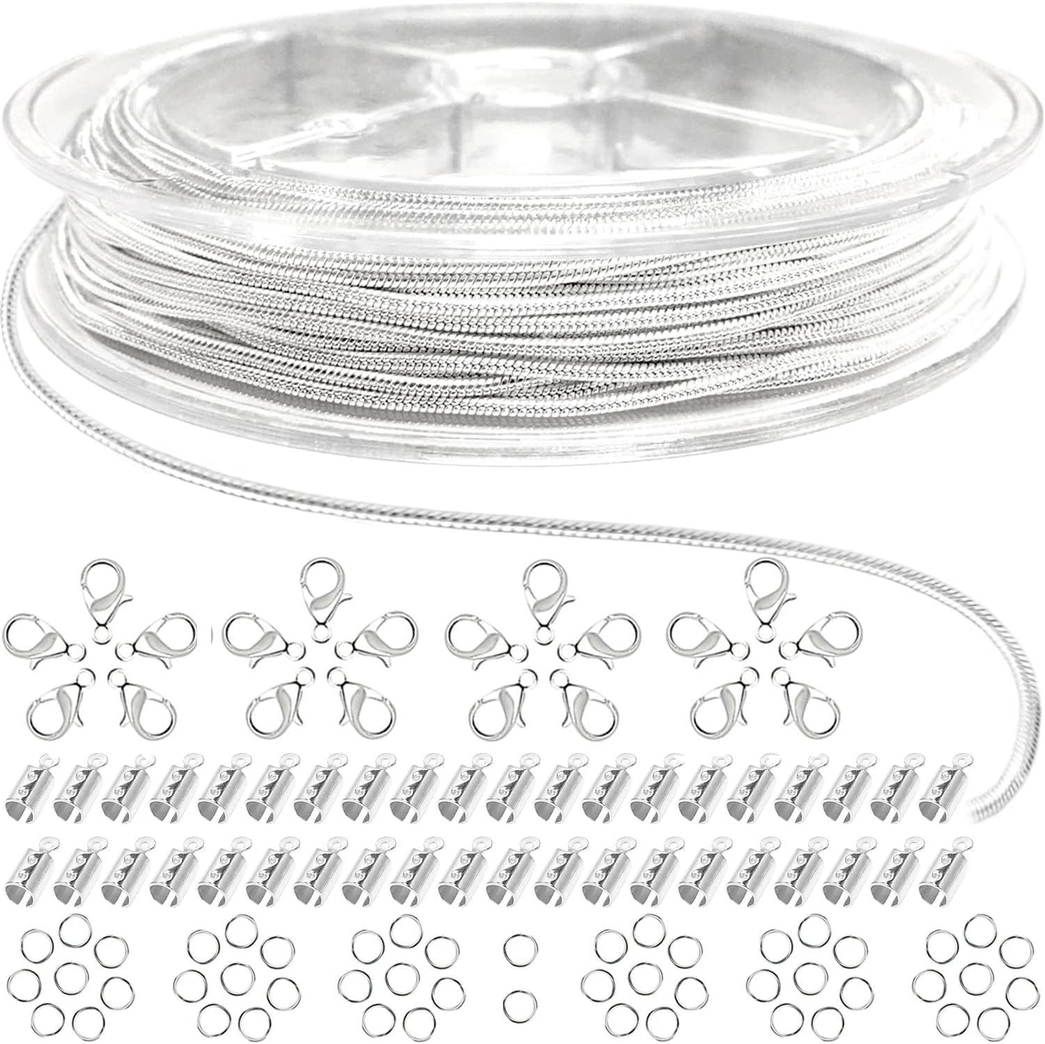 - THIN & STRONG: The diameter size of the round snake chain is 1.2mm, 33ft (10m) long; the size of the lobster clasps are 12mm long, 6.0mm wide; the size of the jump rings are 4.0mm long, 4.0mm wide, 0.6mm thick; the size of the fold over cord end caps are 4.8mm long, 3.0mm wide - Small, fine, but strong and sturdy. Great for jewelry findings and supplies.