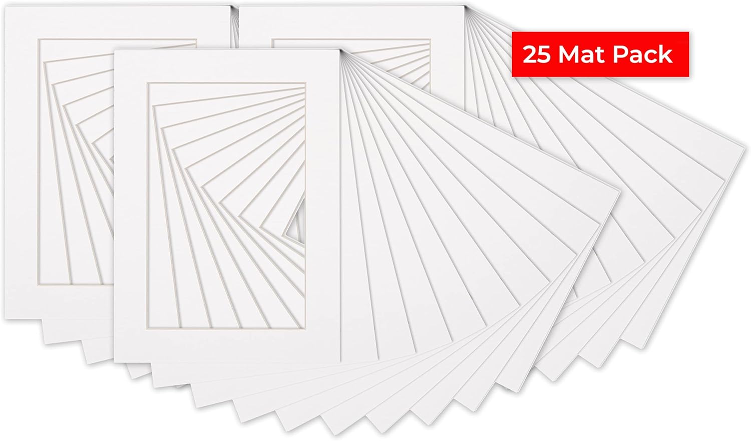 5x7 Mat for 8.5x11 Frame - Precut Mat Board Acid-Free White 5x7 Photo Matte Made to Fit a 8.5x11 Picture Frame, Premium Matboard for Family Photos, Show Kits, Art, Picture Framing, Pack of 25 Mats