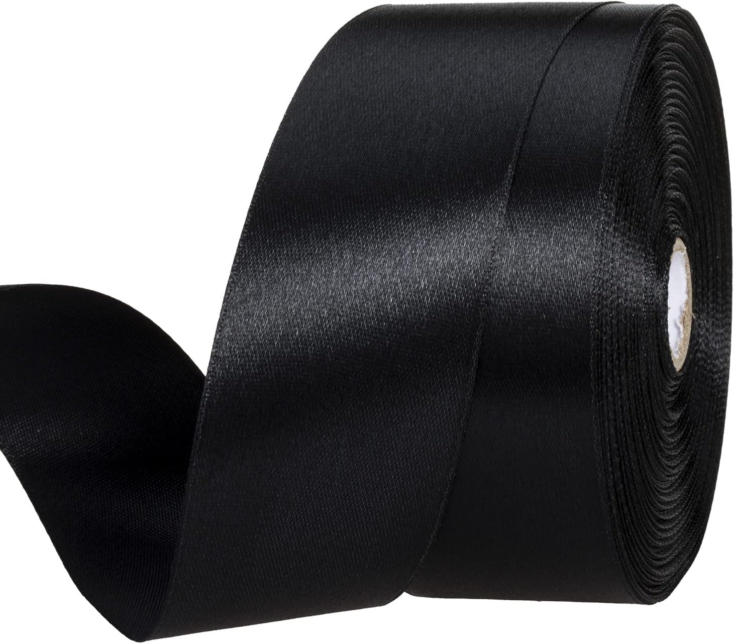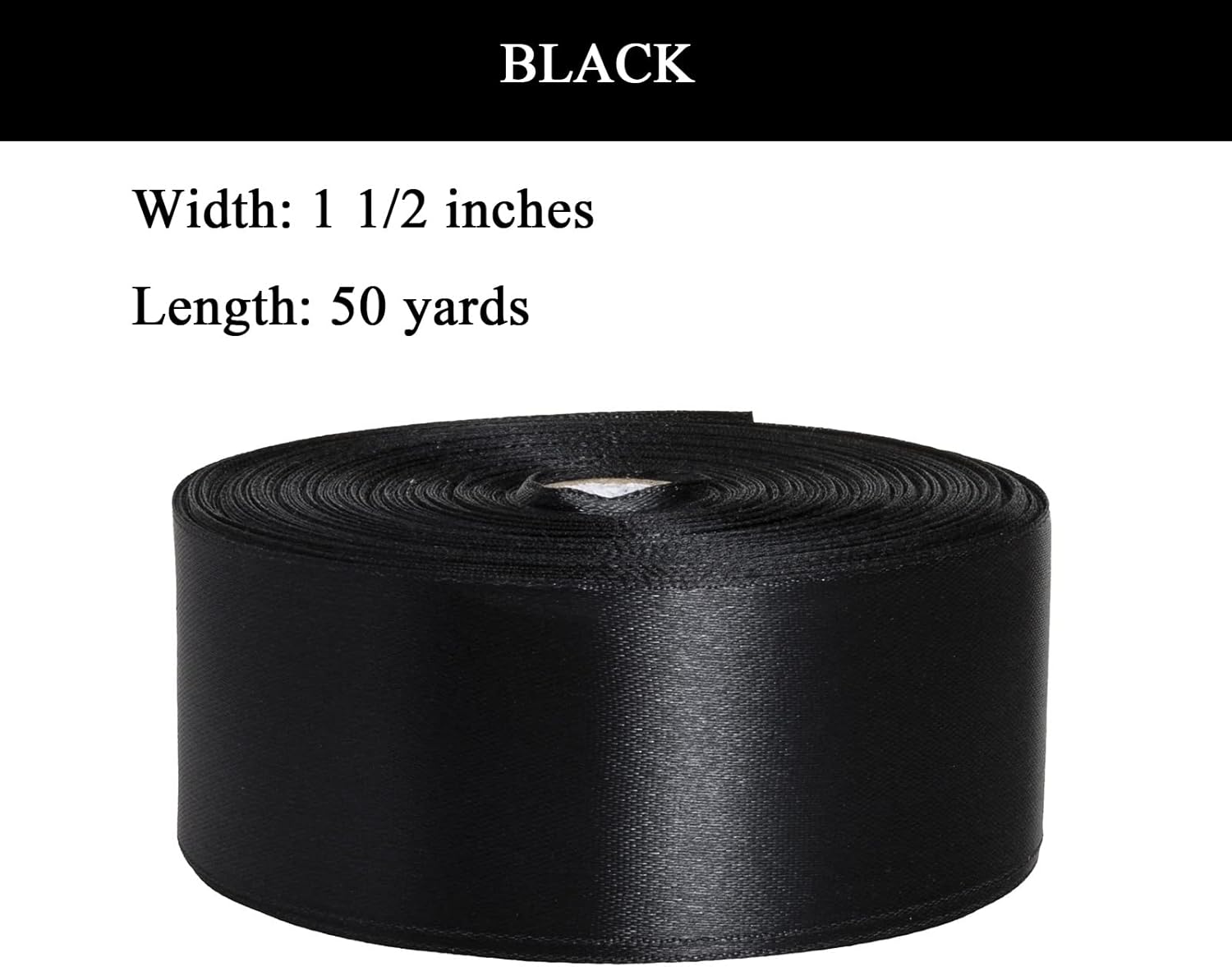 1 1/2 Inch Black Solid Satin Ribbon, 50 Yards Craft Fabric Ribbon for Gift Wrapping Floral Bouquets Wedding Party Decoration