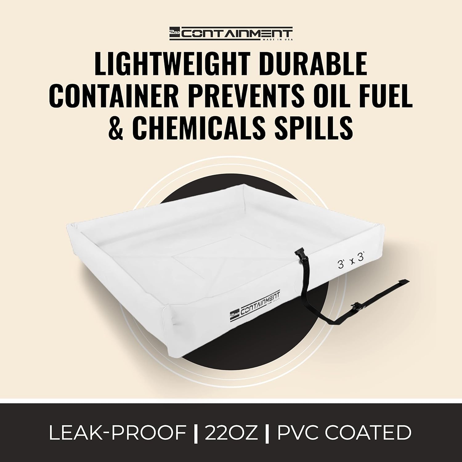 - MULTIFUNCTIONAL -This mini berm has endless uses. For quick response to leaking machines, preventative maintenance, and emergency drips, ponds are the perfect go-to item that is rugged and ideal for small areas for rapid deployment. Perfect to use under valves when pumping liquid from one tank to another.