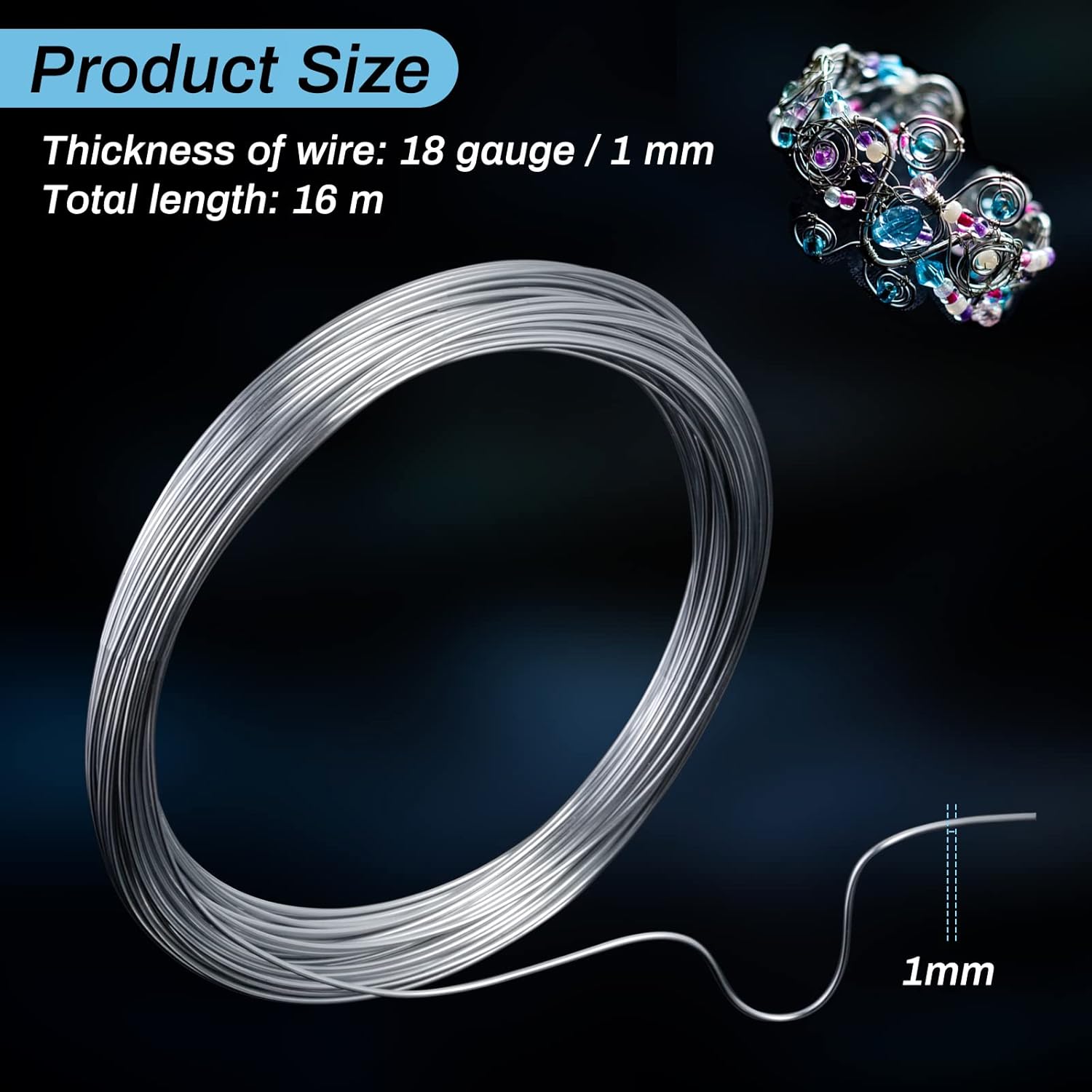 18 Gauge Aluminum Wire for Crafting - 52 Ft Bendable Sculpting Wire, Tarnish Resistant for Jewelry Making, Sculpture & DIY Art Crafts (1mm Thickness)