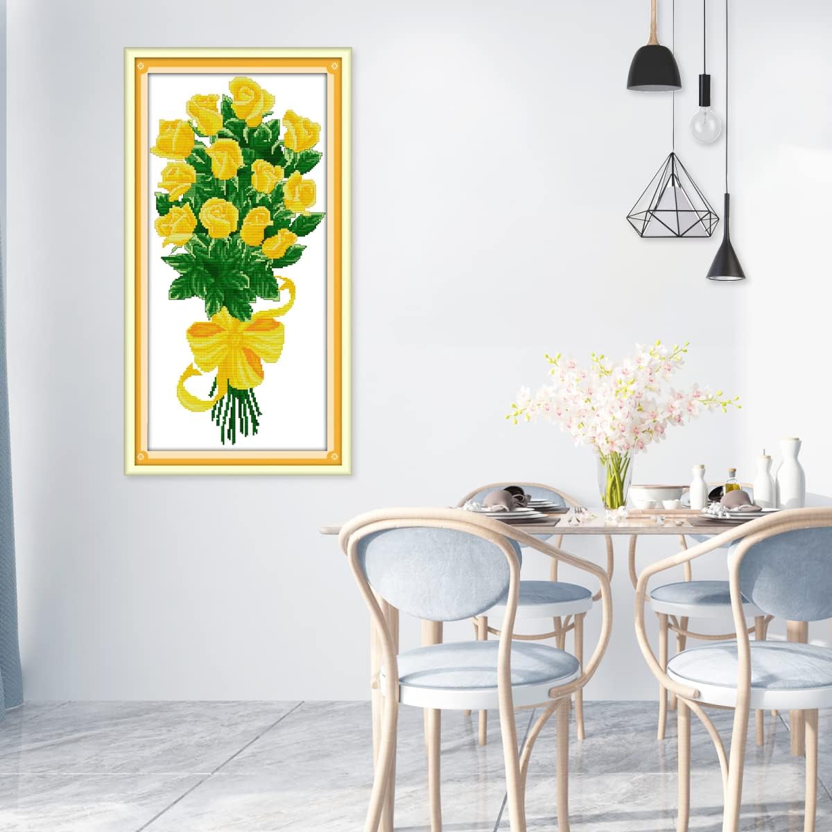 CROSSDECOR Cross Stitch Kits for Beginners DIY Crossstitching Preprinted kits Pattern Needlepoint Embroidery Craft Kits 14CT 2 Strands-11×20.5 inch,Gift (yellow)
