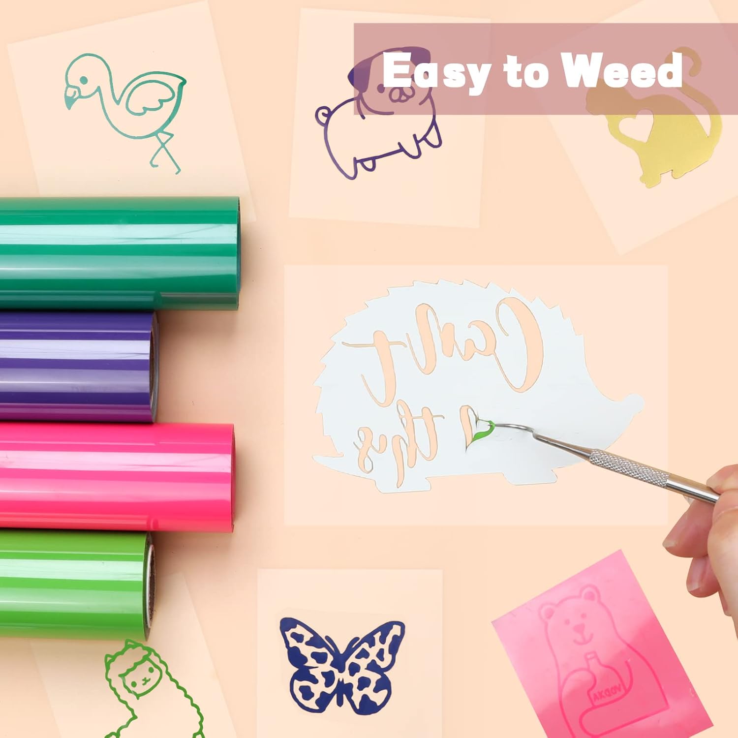 - 【EASY TO CUT & WEED & TRANSFER】 Our premium quality heat transfer vinyl will save your time which you may waste on each image or letter, because you can cut and weed easily through the designs just right.The iron on vinyl is sensitive to temperature and pressure, which can be heat transferred on any t-shirt easily