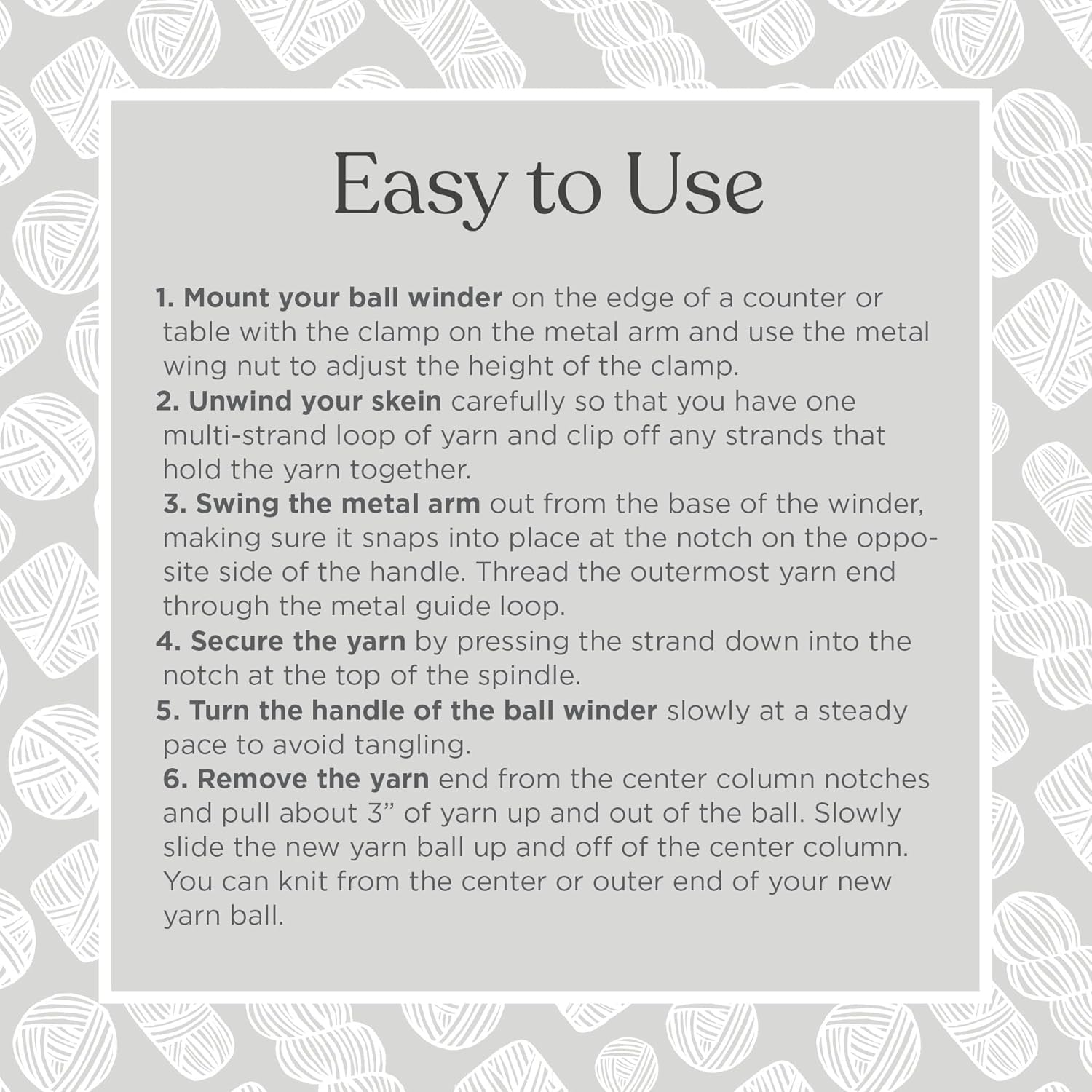 - WINDS YARN: Knit Picks Ball Winder helps you transform yarn hanks and skeins into compact center-pull cakes that sit nicely while you knit and crochet