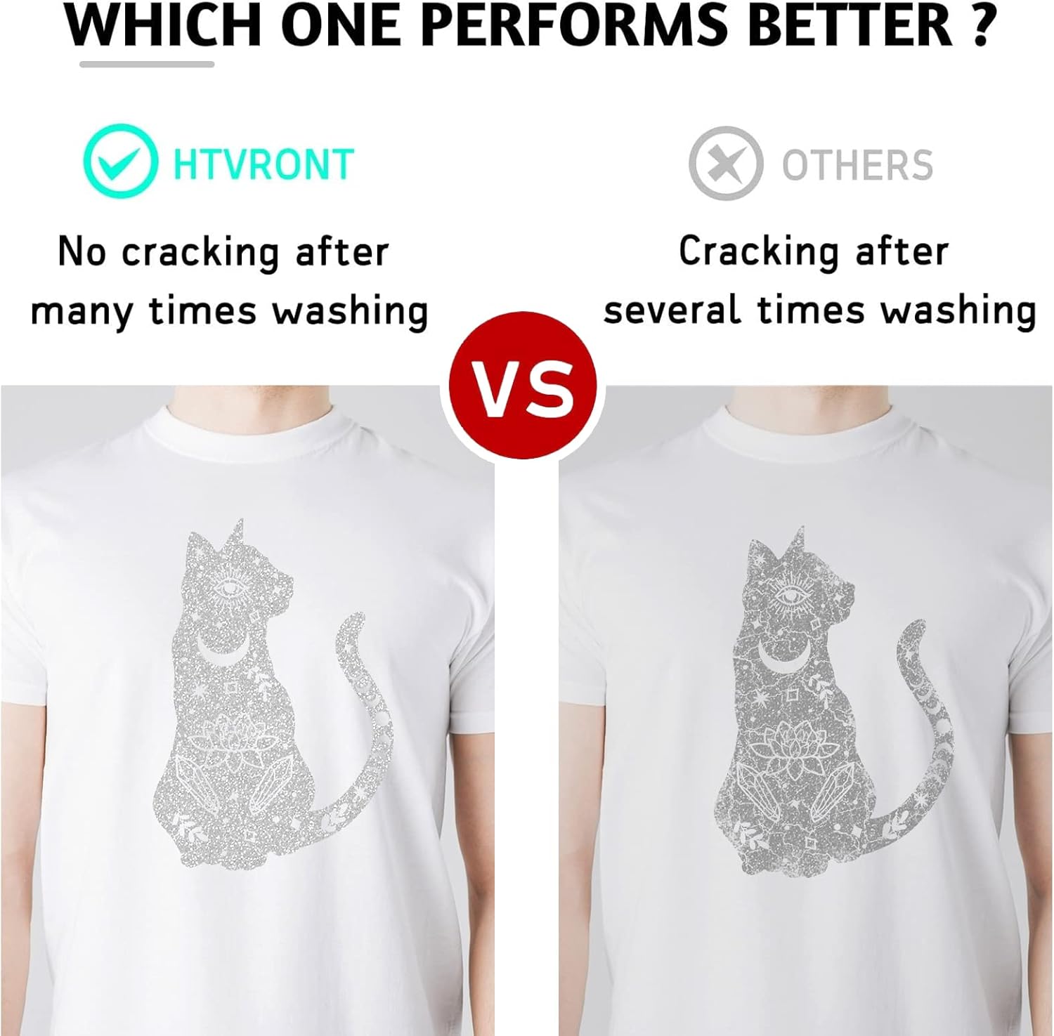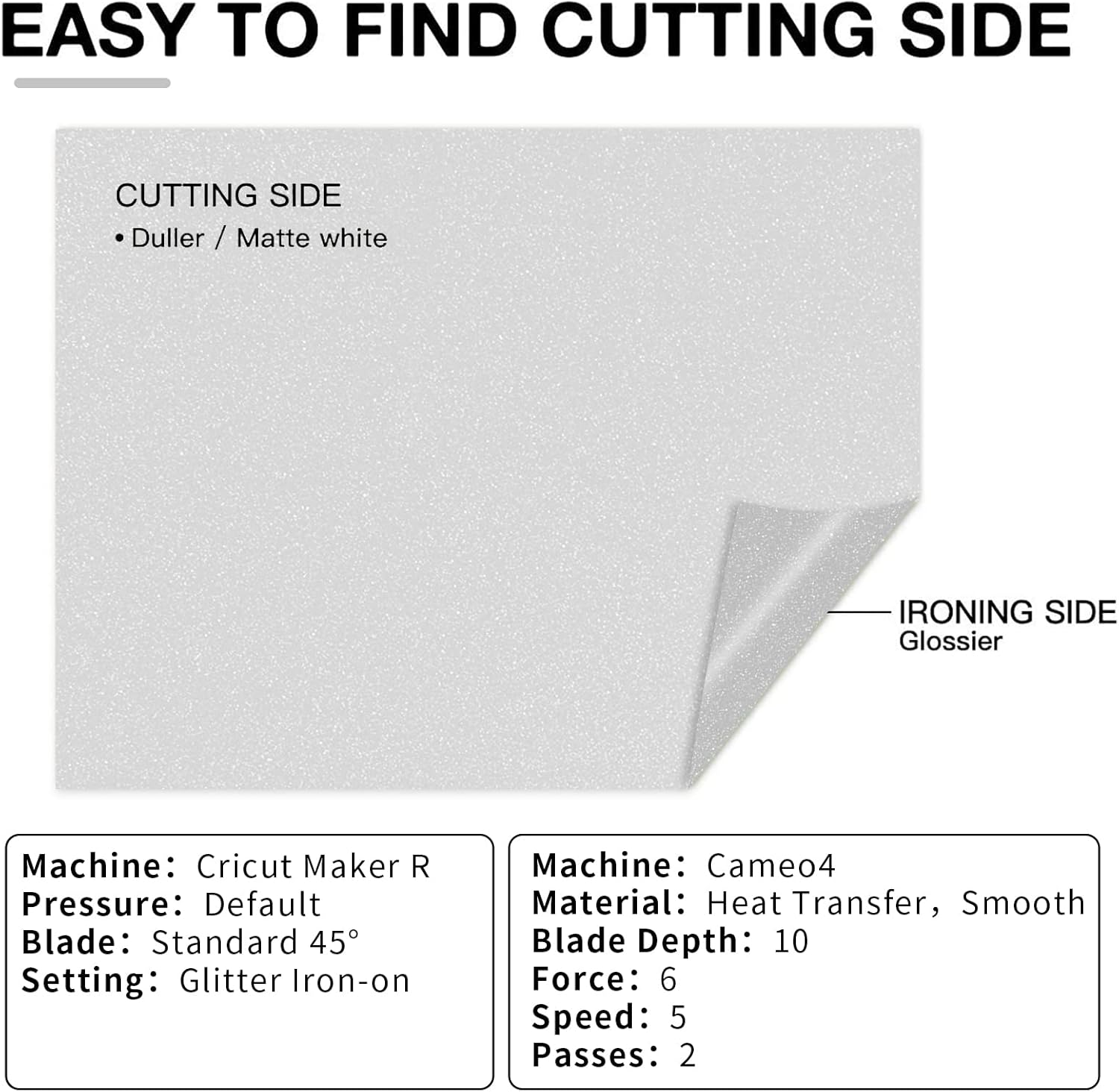 - 【PREMIUM MATTE MATERIAL】HTVRONT glitter htv are easy and convenient to cut into different size of art designs or logos or letters and perfect for 12x12" and 12x24" cutting mats. Our iron on vinyl are compatible for all cutter machine. The glitter iron on vinyl uses fine glitter, which is smooth, easy to layer and apply. All the glitters are sealed in, never residue.