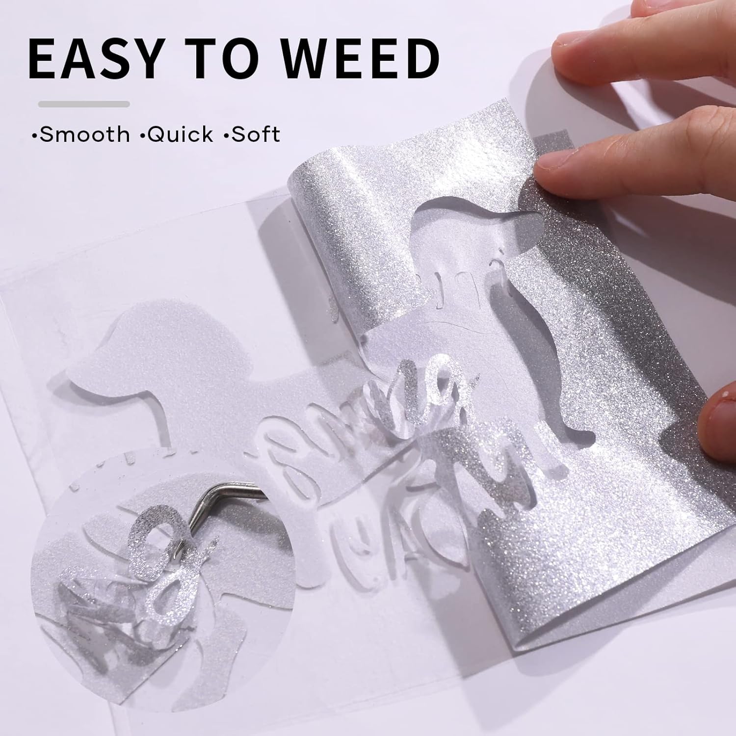- 【EASY TO CUT & WEED & TRANSFER】The Silver glitter HTV heat transfer vinyl is smooth with a good cutting application characteristics, so you can cut and weed easily through the designs just right.The red glitter HTV vinyl sheet is sensitive to temperature and pressure, which can be heat transferred on any t-shirt easily. Our red glitter HTV is COLD peel.