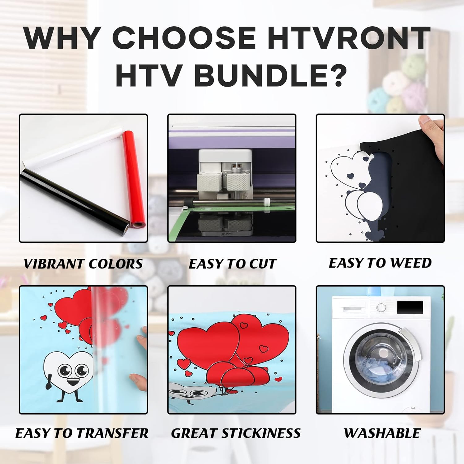HTVRONT HTV Vinyl Rolls Black White and Red Heat Transfer Vinyl, 12" x 8 FT Black White and Red Iron on Vinyl for Shirt, Easy to Cut & Weed for Heat Vinyl Design