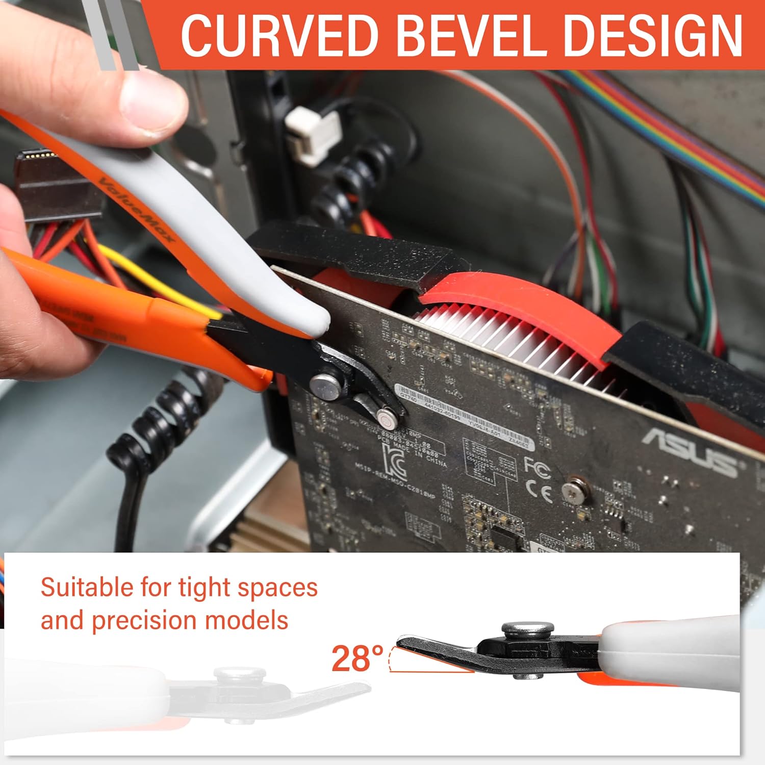 - SHARP AND DURABLE: ValueMax flush cutters are made of heat treated premium SK85 steel with angled head design, which guarantees cutting pliers are sturdy, durable, and long-lasting. The blades are sharp and aligned to achieve a clean and flush cut.