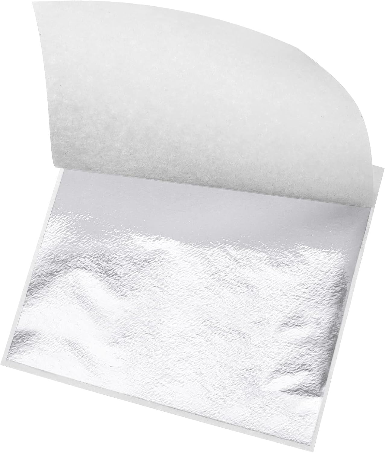 MECCANIXITY Gold Leaf Foil Sheet, Bright Silver Leaf Papers, 3.3 x 3.1inch for Art Decoration, Sculptures, Painting, Pack of 100