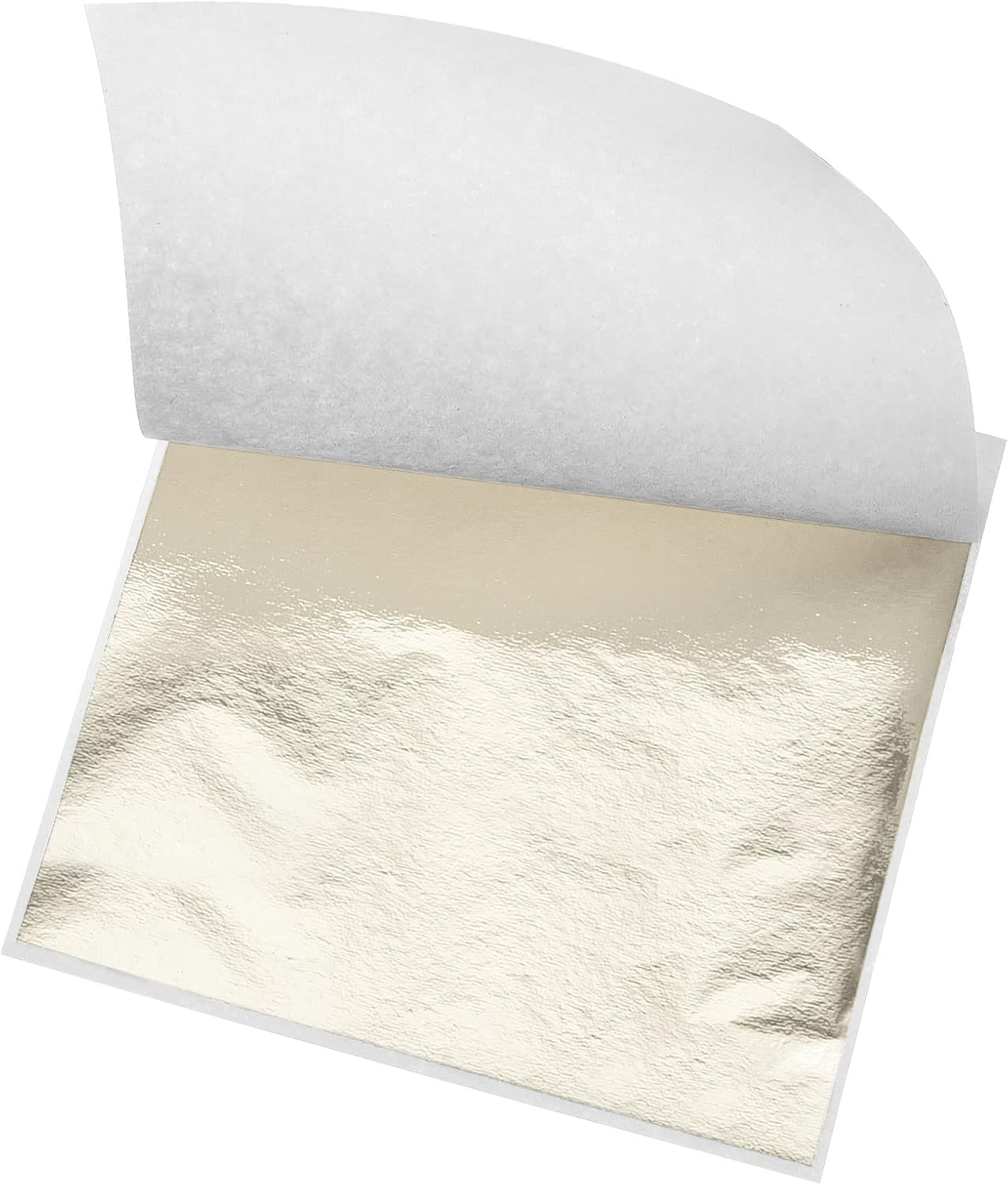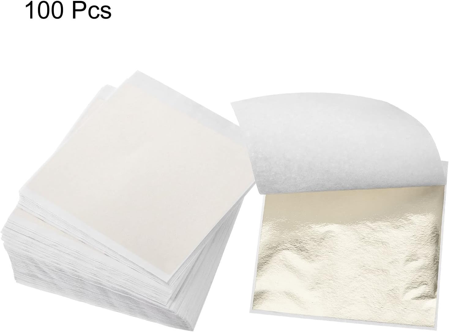 MECCANIXITY Gold Leaf Foil Sheet, Silver Leaf Papers, 3.3 x 3.1inch for Art Decoration, Sculptures, Painting, Pack of 100