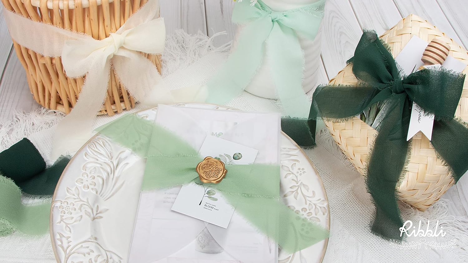 Ribbli Forest Green Chiffon Ribbon 1-1/2 inch x 20 Yard Handmade Fringe Chiffon Silk Ribbon,Black Ribbon for Wedding Invitations, Bridal Bouquets Wrapping, Flower Arrangement Decoration