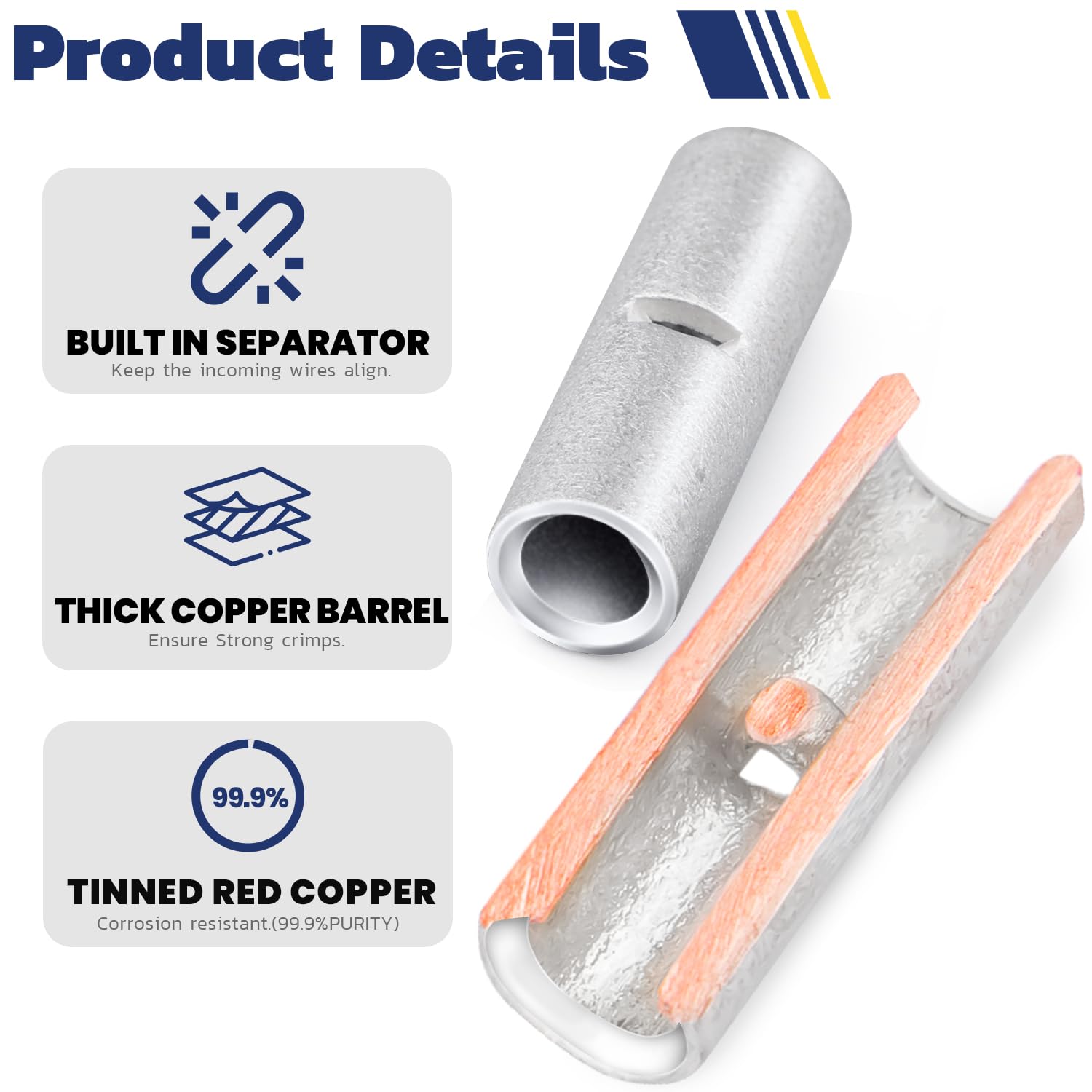 - Excellent Conductivity: Made from pure copper, these butt connectors offer excellent conductivity for efficient and reliable electrical connections