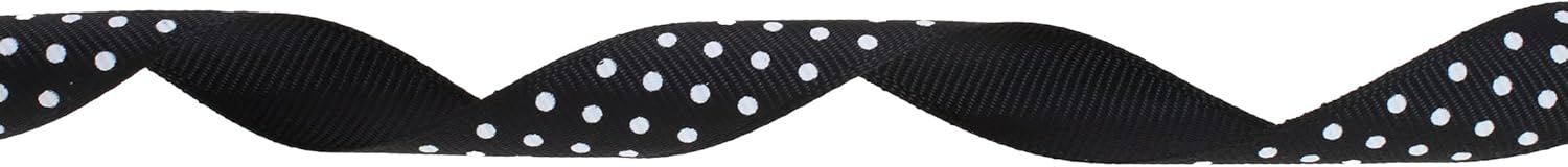 Polka Dot Grosgrain Ribbon 25 Yard Each Roll 100% Polyester (5/8", Black)