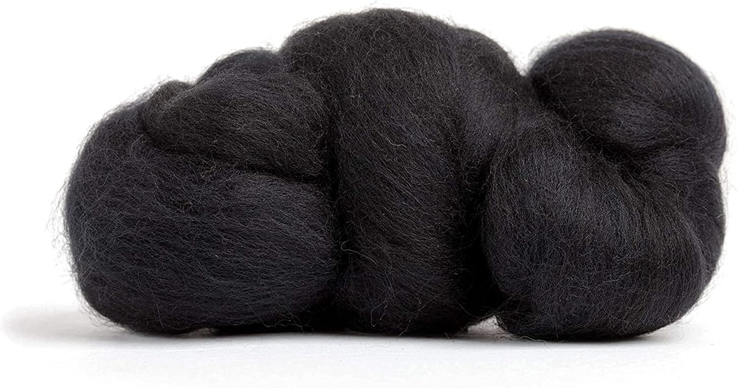 Revolution Fibers Merino Wool Roving | Premium Combed Wool Top | 22 Micron, Perfect for Felting Projects, Spinning, Wall Hangings and Tapestry (Raven)