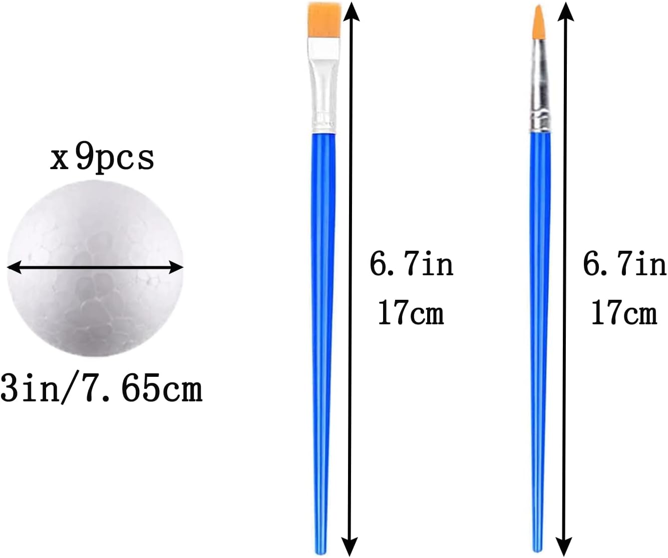 - Size Information: Include 9pcs 3inch/7.65cm foam balls and 2 pieces painting brushes.