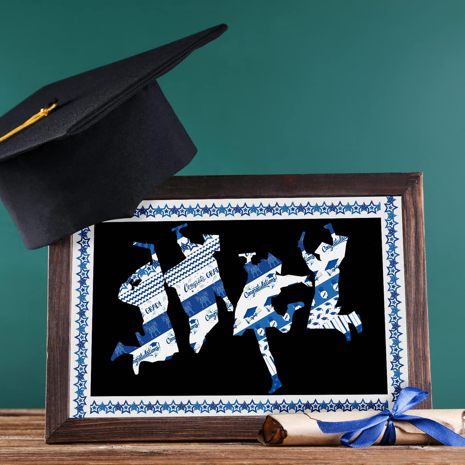 Whaline 12 Rolls Graduation Washi Tape Blue White Congrats Grad Washi Masking Tape Congratulations Star Grad Cap Decorative Paper Stickers for Graduation Scrapbook Gift Wrapping DIY Art Crafts